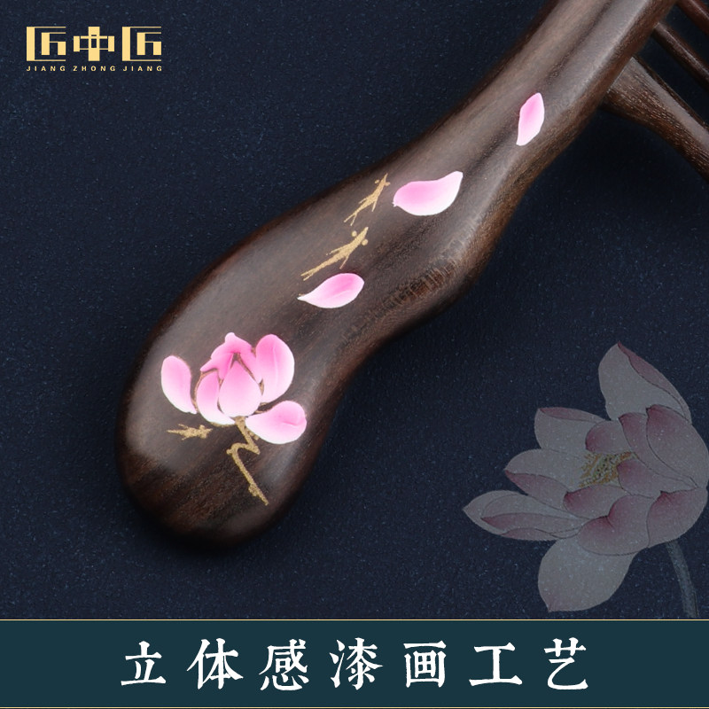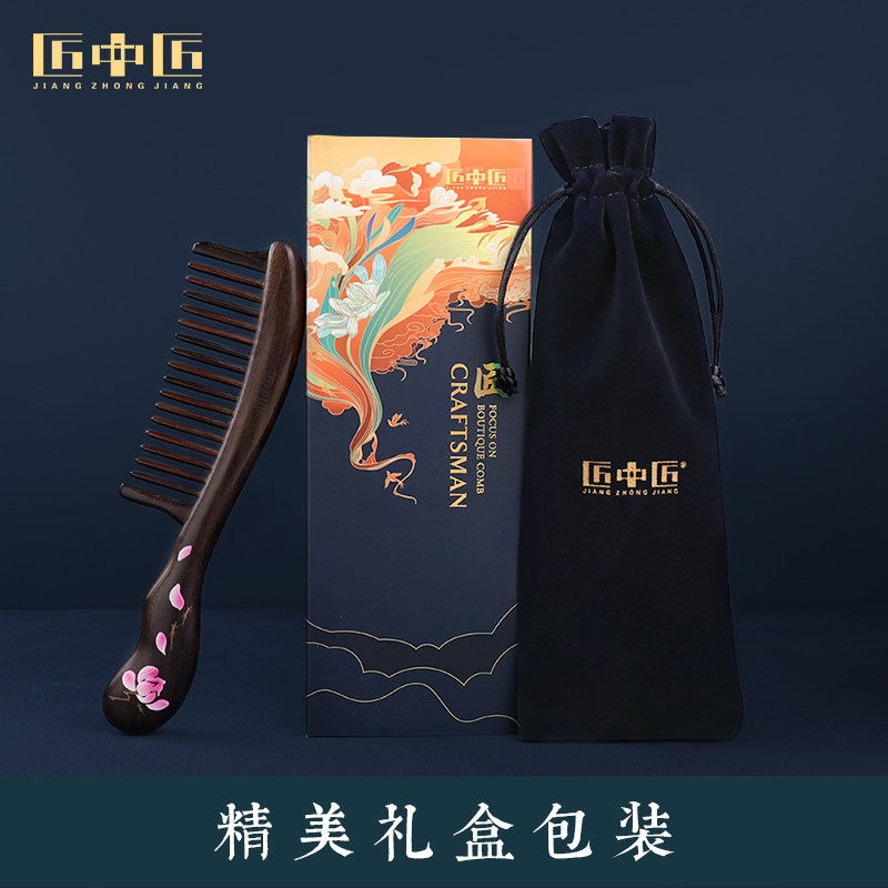 📚 匠中匠插齿木梳子女士专用长发大号家用中细齿直发卷发梳漆艺雕花