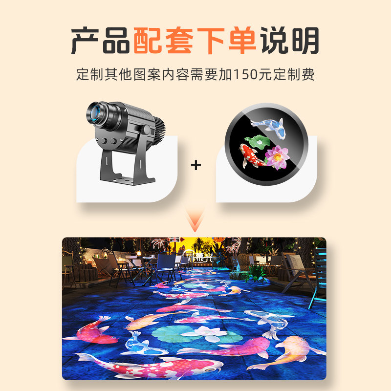 📚 动态锦鲤鱼荷花图案文字logo广告投影灯户外文旅亮化防水射灯定制