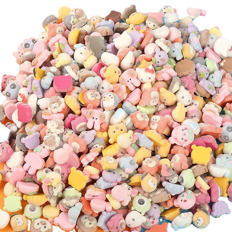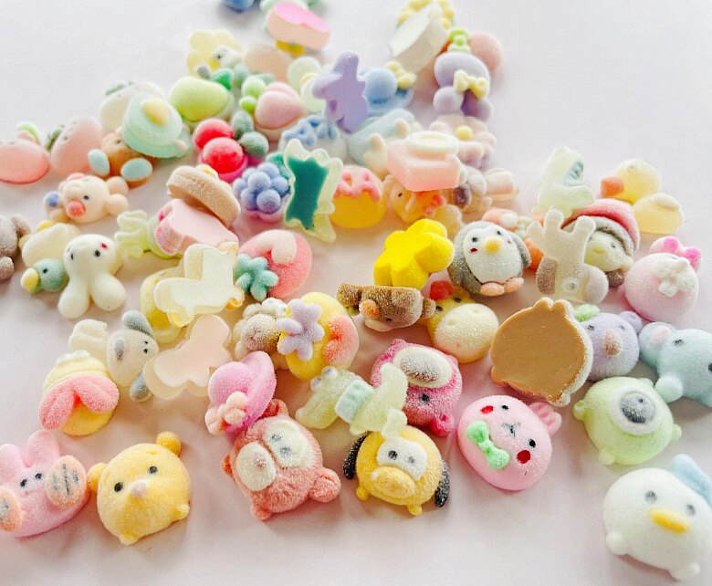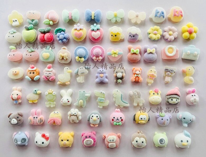 📚 冬植绒树脂小公仔手机diy饰品耳钉发夹配件卡通水果蝴蝶结KT福袋