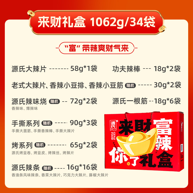 📚 源氏辣条礼盒零食大礼包辣片麻辣香辣送礼豆干休闲零食品1062g