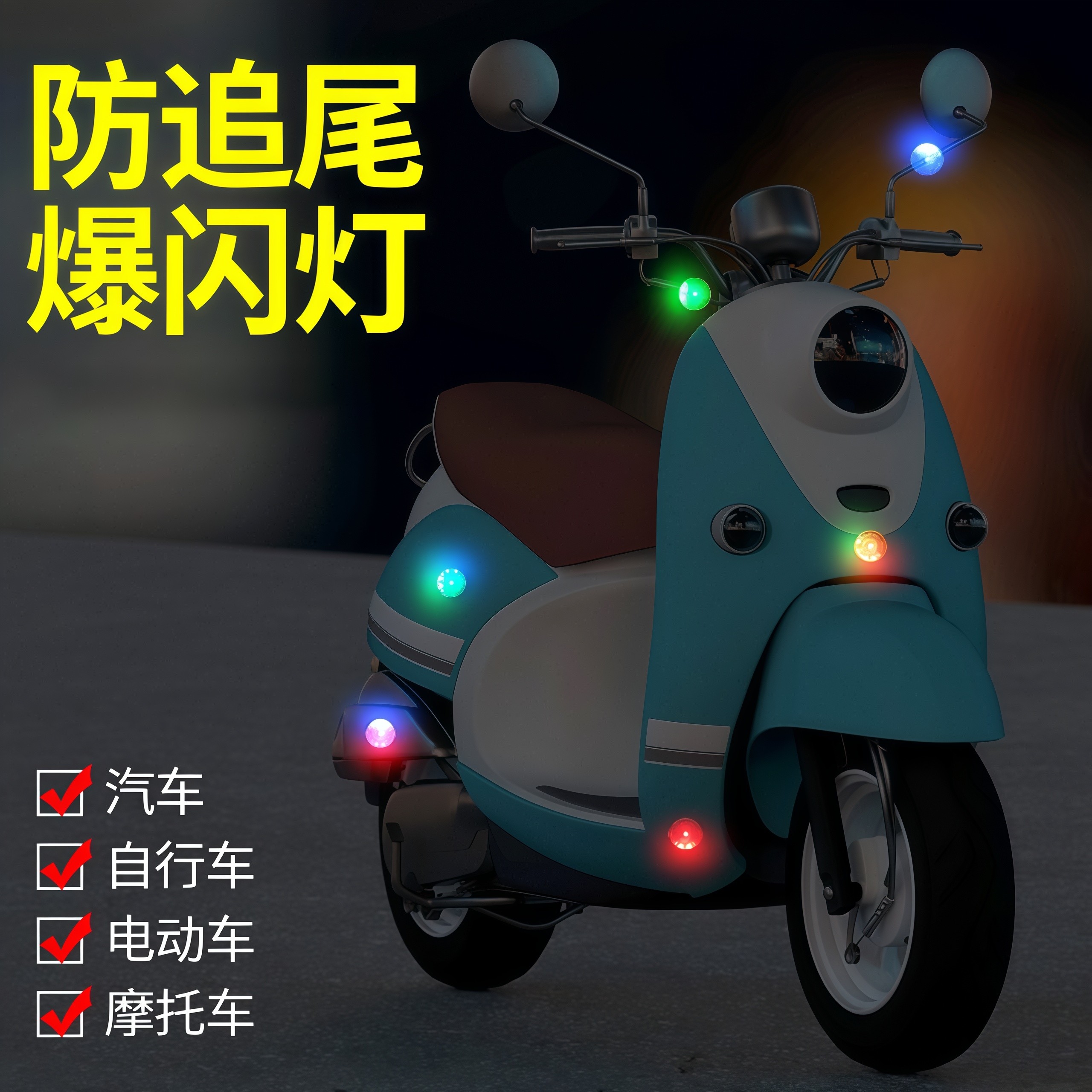 📚 电动车震动发光防追尾红蓝爆闪灯免接线摩托车震动警示刹车灯改装