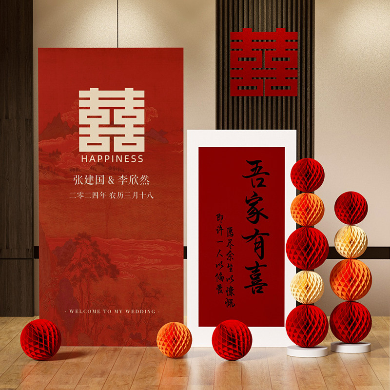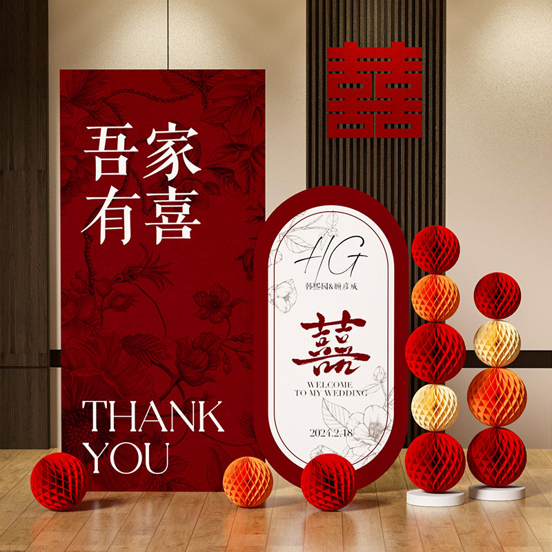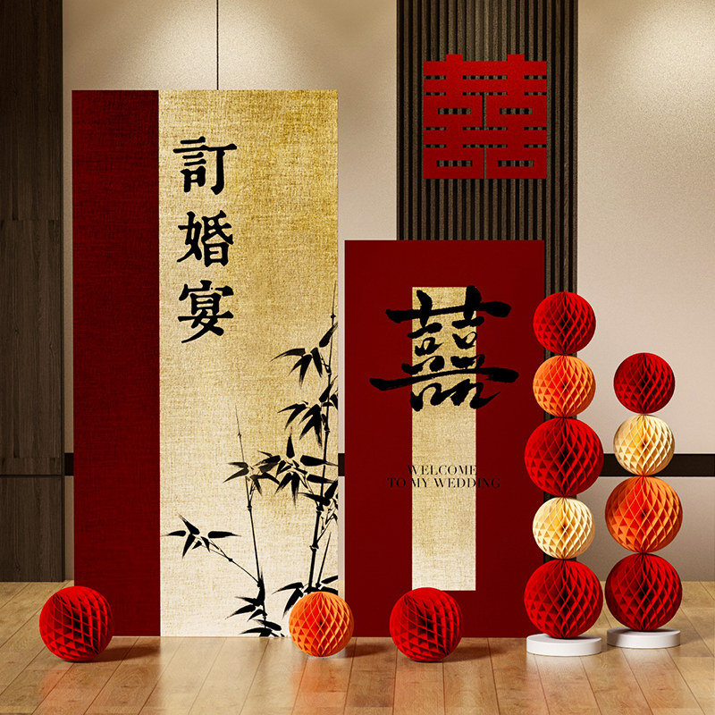 📚 新中式结婚礼布置迎宾牌背景墙kt板定制订婚宴酒店门口立牌指示牌