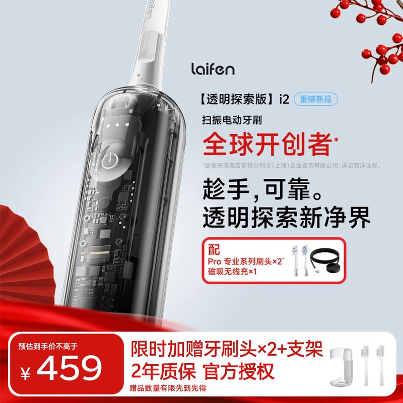 📚 徕芬二代扫振电动牙刷i2ABS透明探索款 成人牙刷 新年情人节礼物