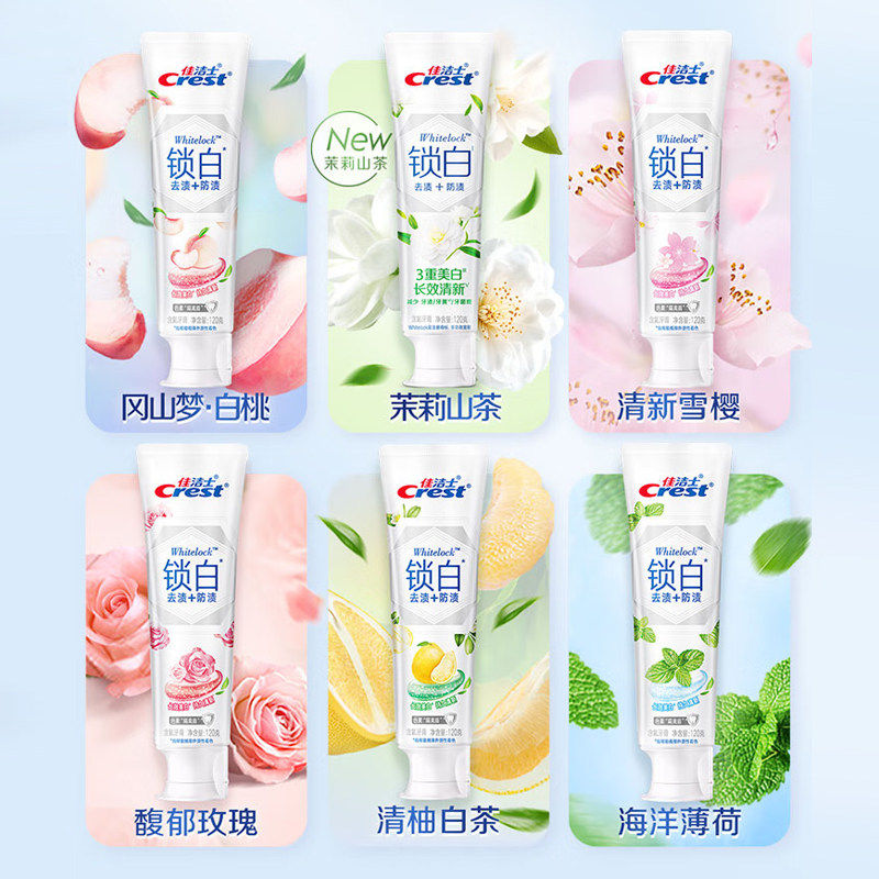 📚 佳洁士锁白牙膏120g白桃花雪樱西柚香含氟牙膏清新口气官方正品