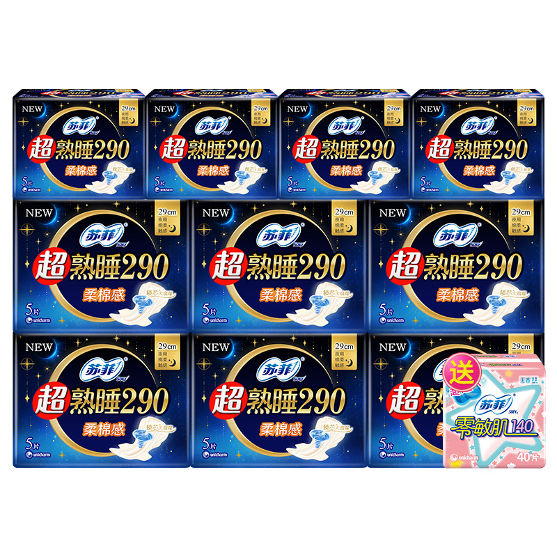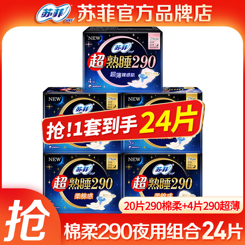 📚 苏菲卫生巾女 超熟睡加长夜用290mm姨妈巾组合装整箱官方品牌正品