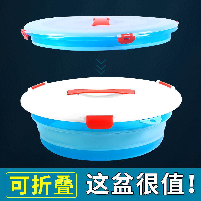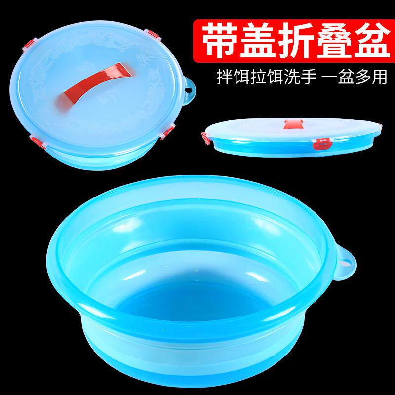 📚 钓鱼专用折叠盆饵料盆带盖开饵盆硅胶鱼料盆超大拉饵盆带磁鱼饵盆