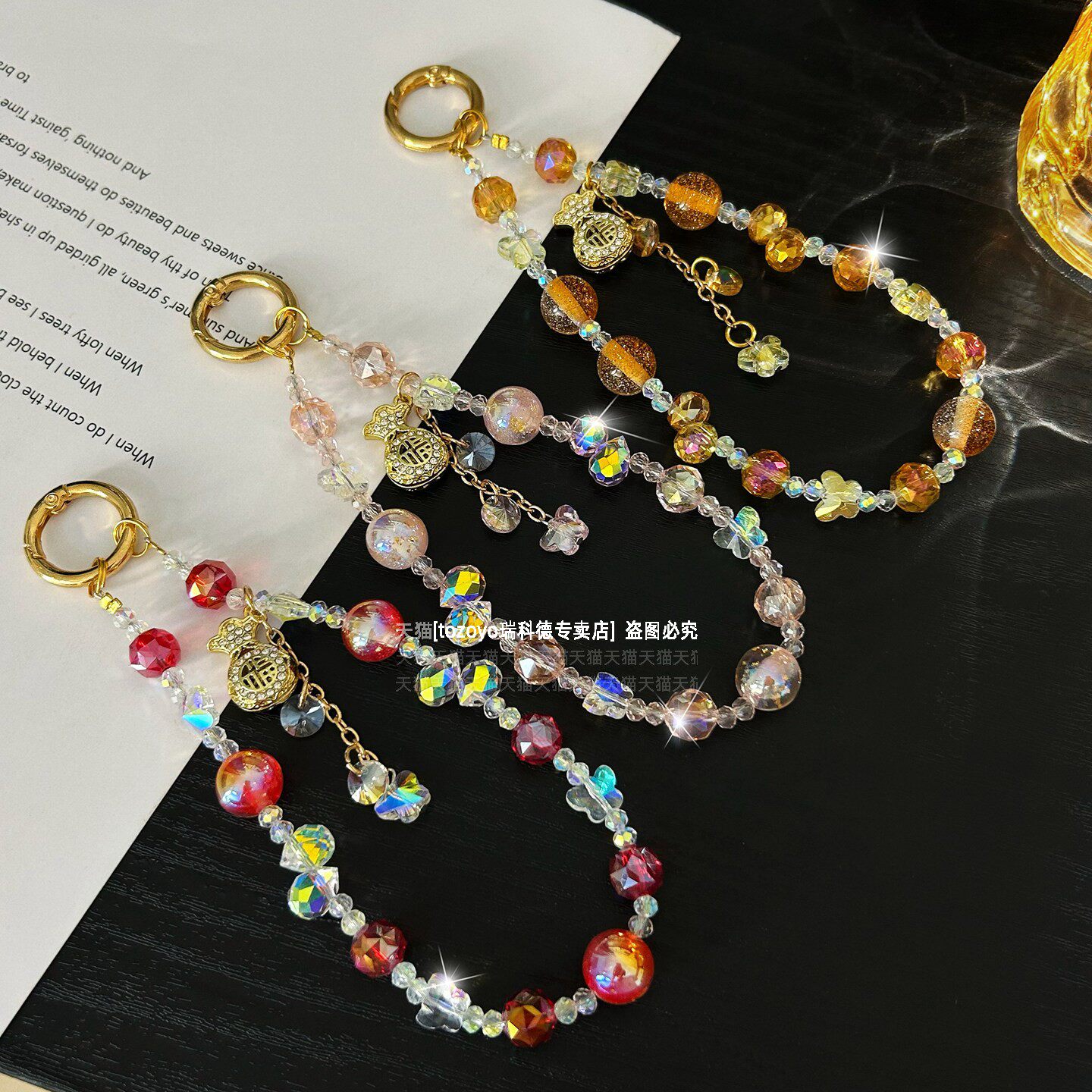 📚 招财转运手机链精致福袋吊坠水晶挂链手腕款防丢绳链条短款高档爆闪手链蝴蝶串珠独特新中式挂饰包包钥匙扣壳
