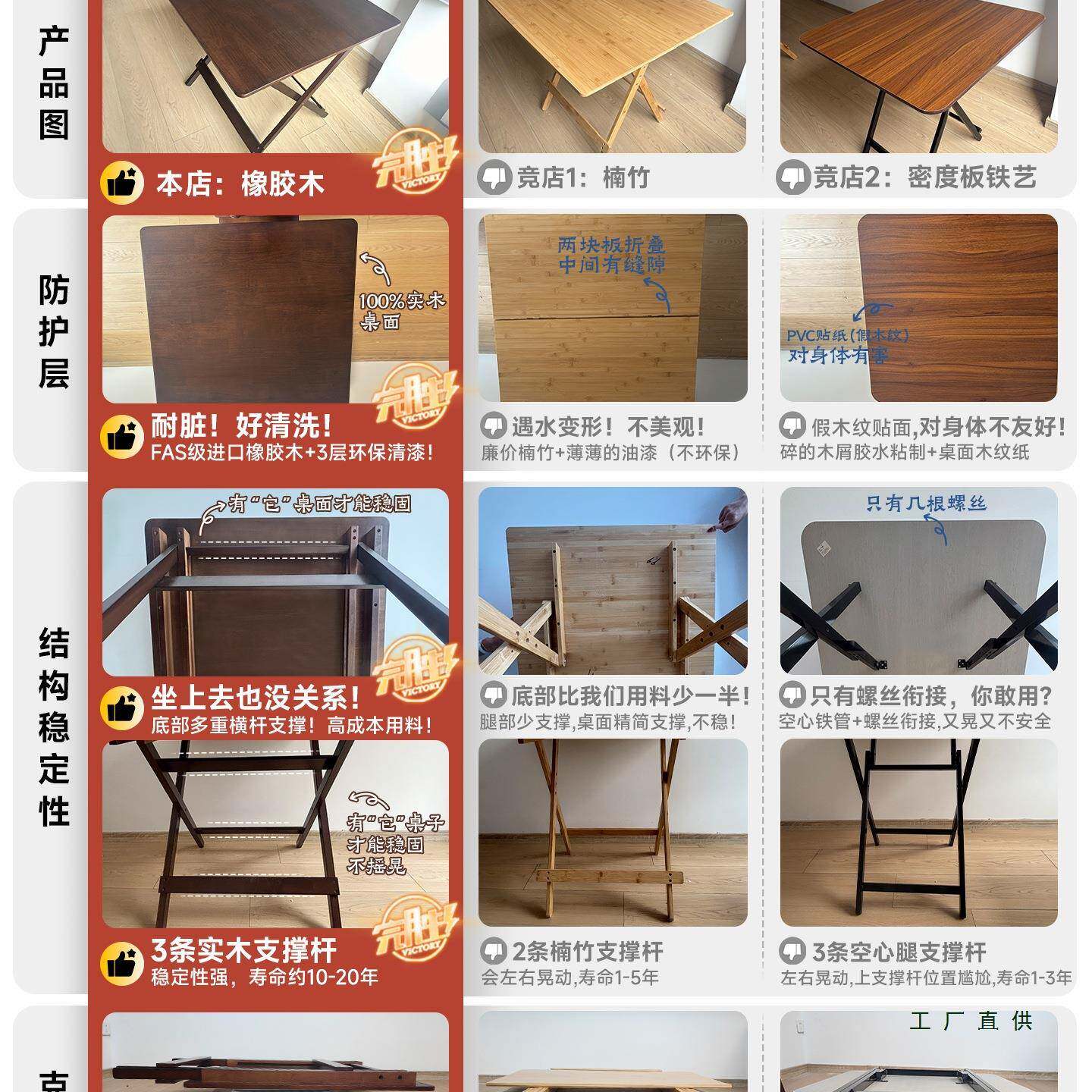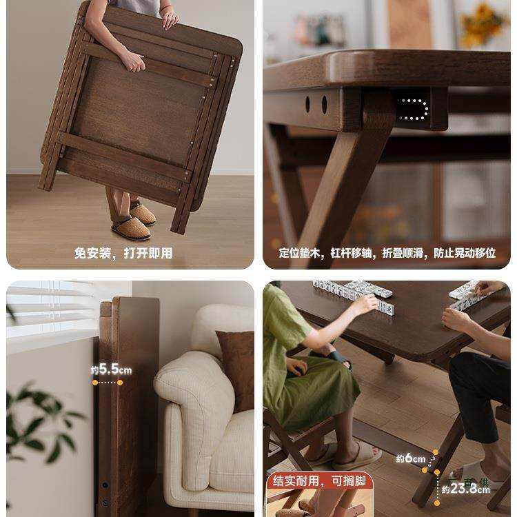 📚 实木折叠桌正方形吃饭桌可折叠餐桌家用小户型简易四方桌子长方形