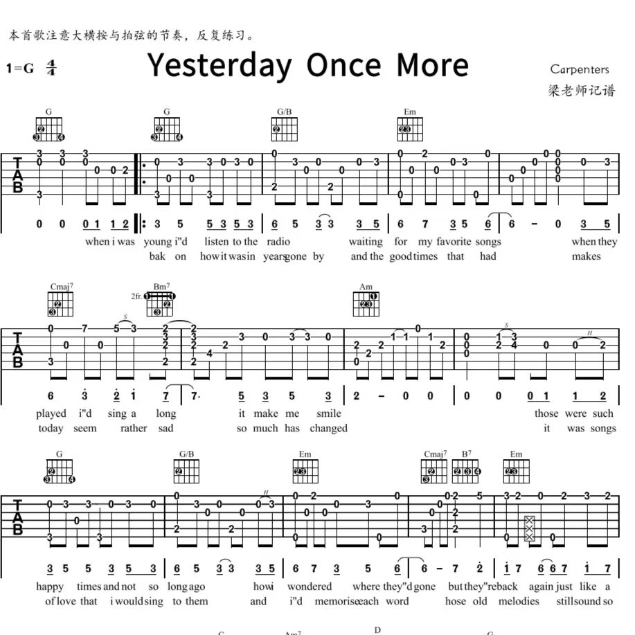 📚 《昨日重现》指弹独奏电子版吉他谱 带分段教学 C调指法简单好弹
