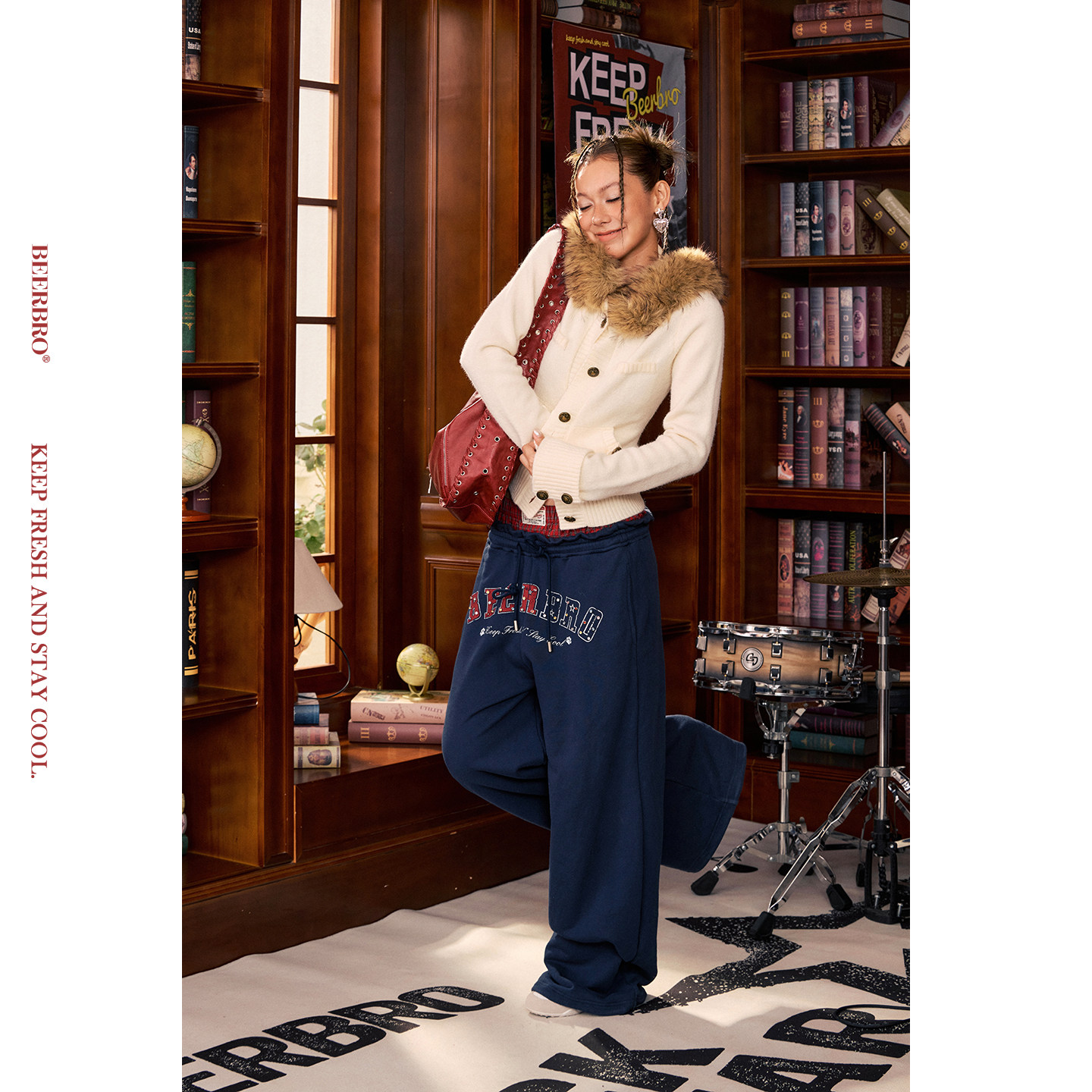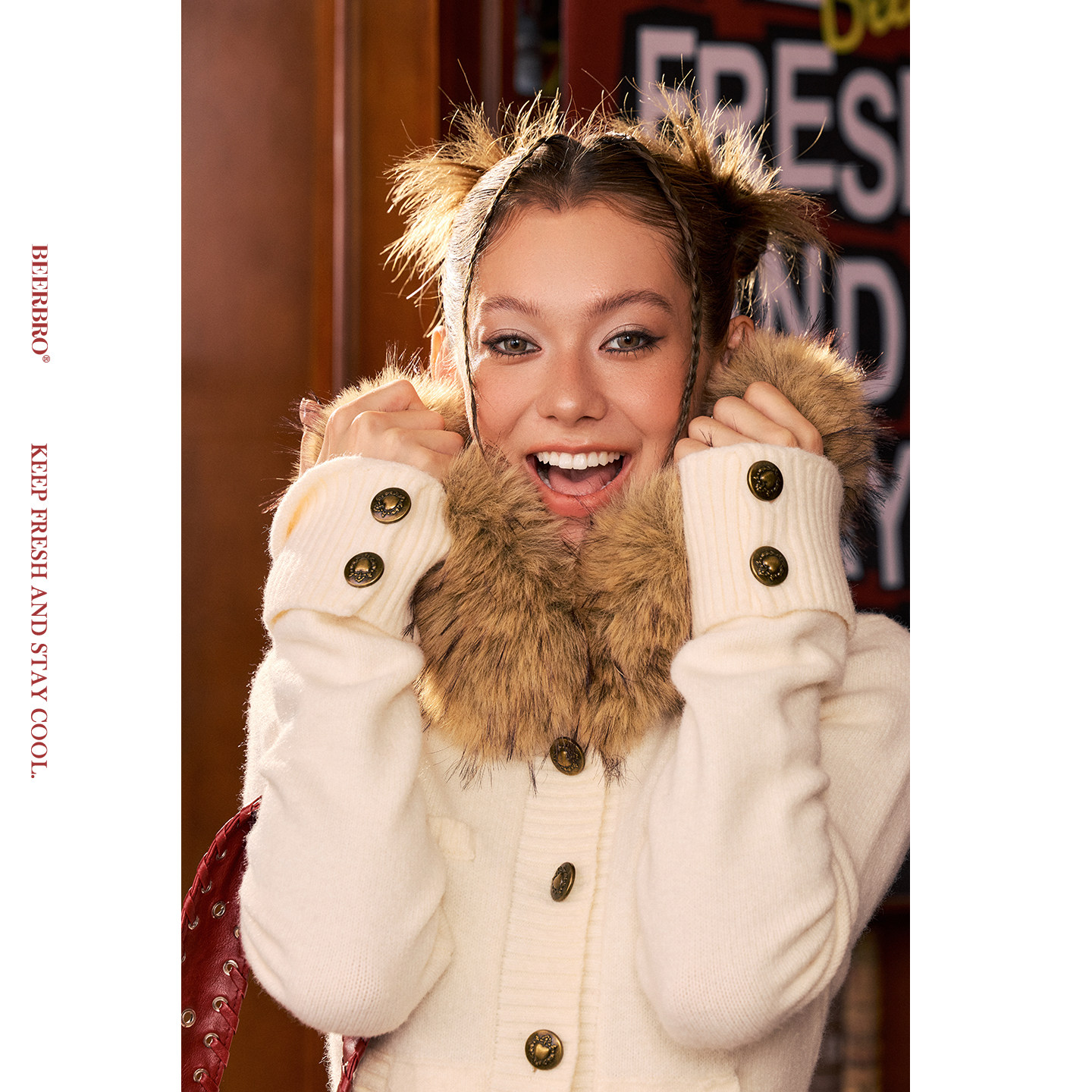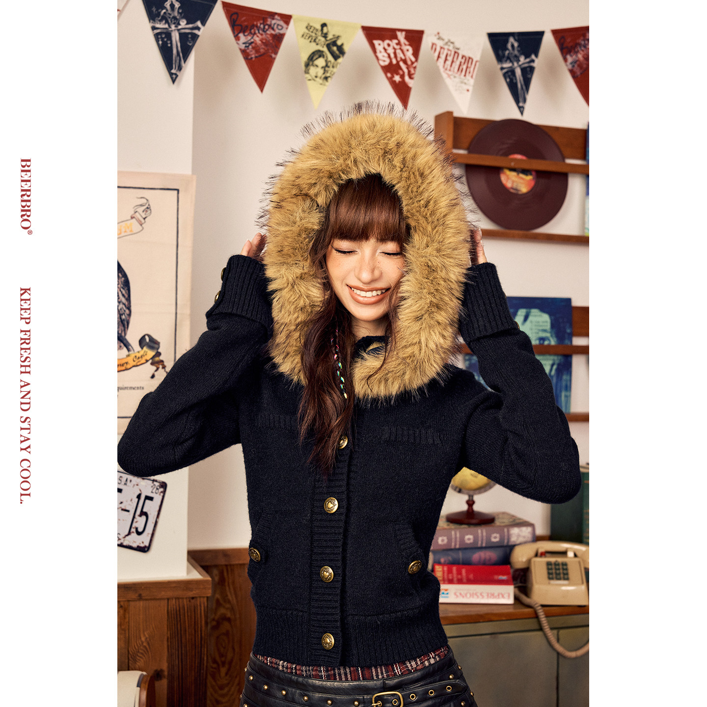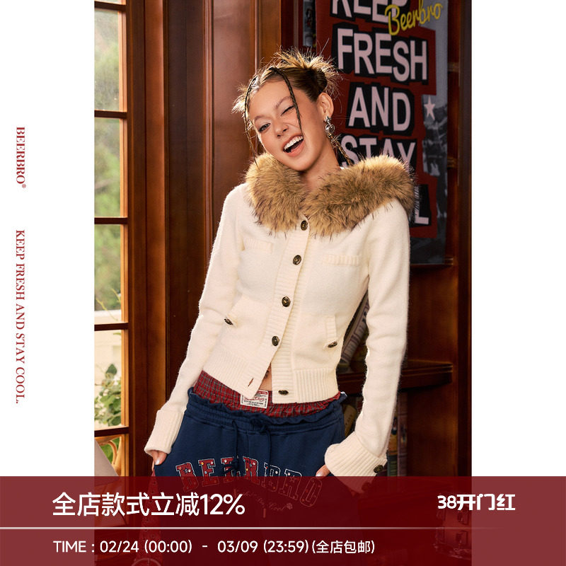 📚 BeerBro『摇滚书吧』亲肤感纱线秋冬紧身可拆卸毛领短款毛衣外套
