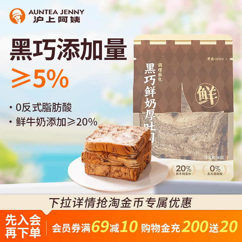 💥【秒杀】沪上阿姨黑巧鲜奶厚吐司面包🍞代早餐美味佳品!券后价仅需44.9!
