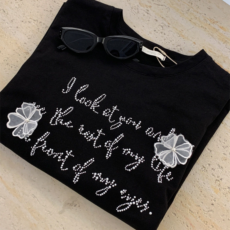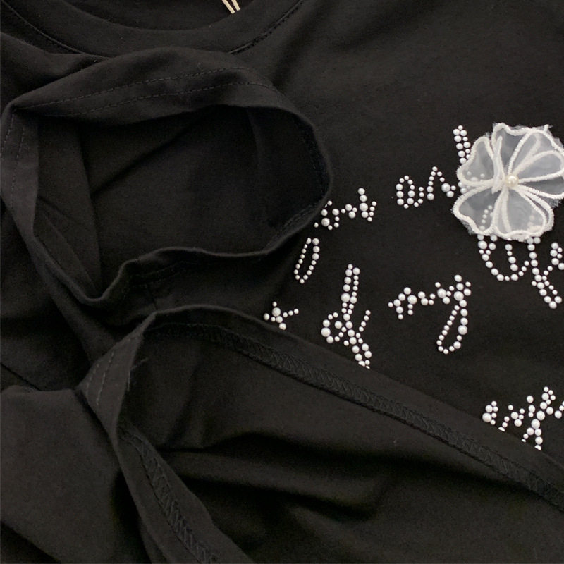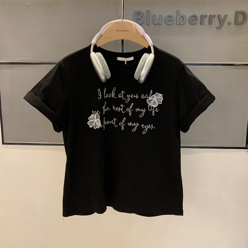 📚 BlueberryD重工钉珠纯棉短袖女t恤T恤女夏上衣夏季女装宽松定制