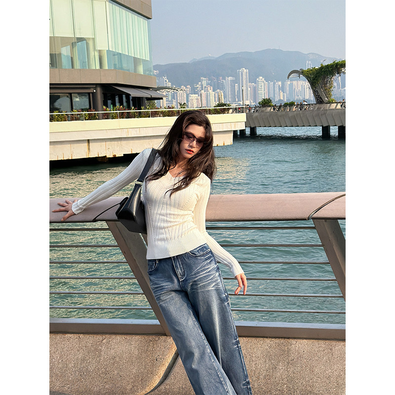 📚 六指导 温暖定律 简约V领针织毛衣女冬新款修身显瘦通勤百搭上衣