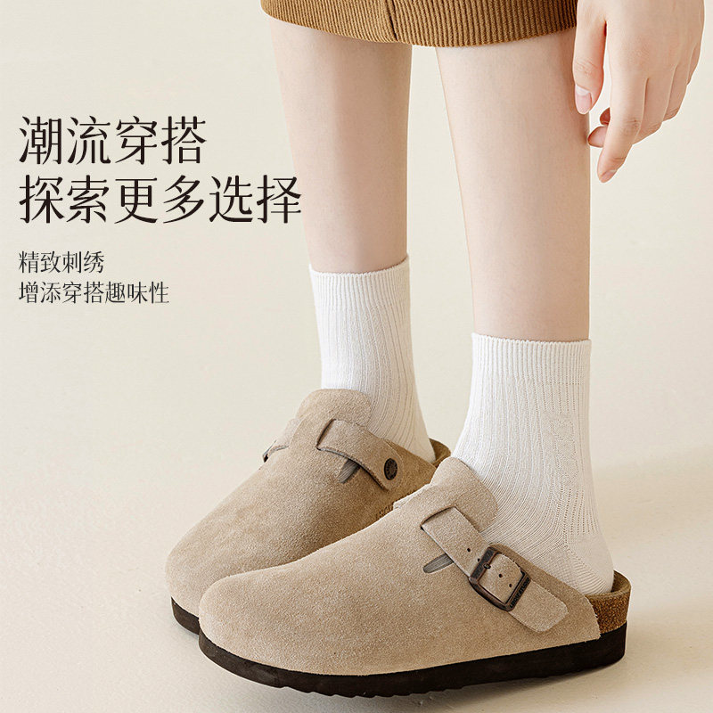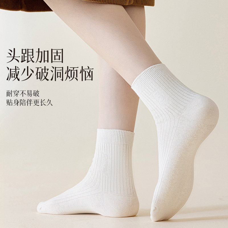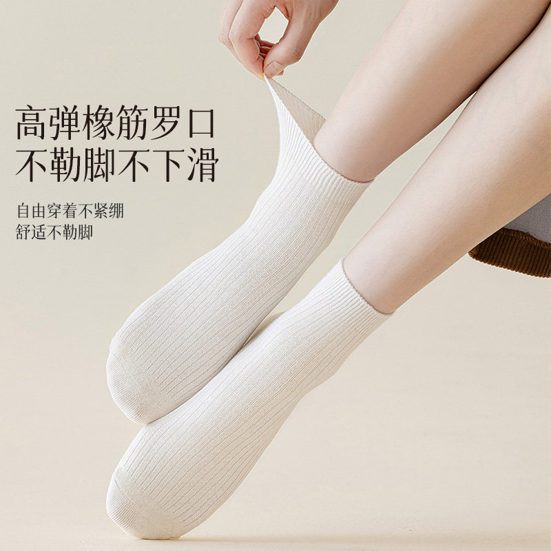 📚 梦娜袜子女春秋100%全棉短袜亲肤高弹时尚休闲百搭中筒袜纯棉女袜