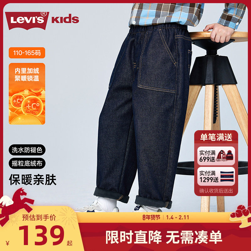 📚 【加绒】李维斯儿童装男童裤子原牛软牛仔裤2025秋冬新款女童长裤