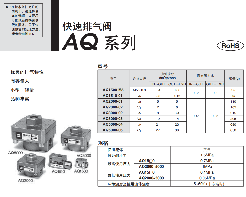 📚 SMC快速排气阀AQ2000-02/AQ3000-03/AQ5000-04气动元件泄气阀快排
