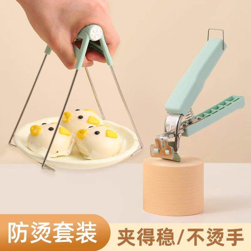 📚 矽胶防滑防烫夹取碗夹套装不锈钢盘子蒸锅蒸菜夹子厨房提盘夹碗器