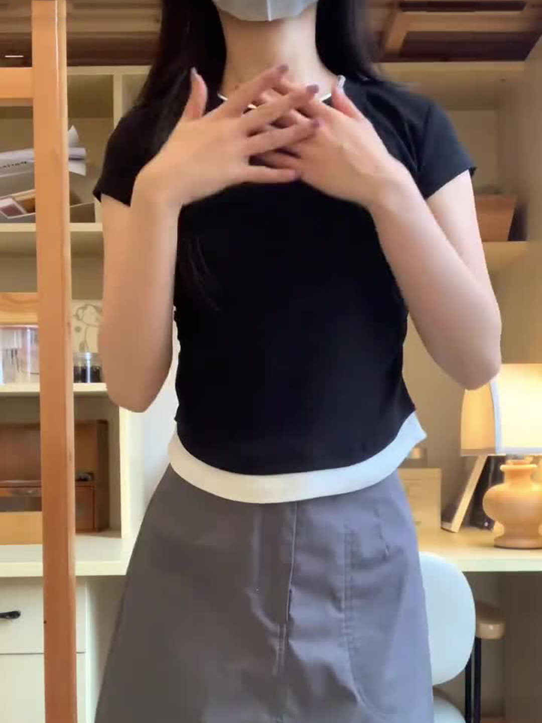 📚 韩系chic港味假两件短袖T恤女夏季韩版修身显瘦短款打底上衣小衫