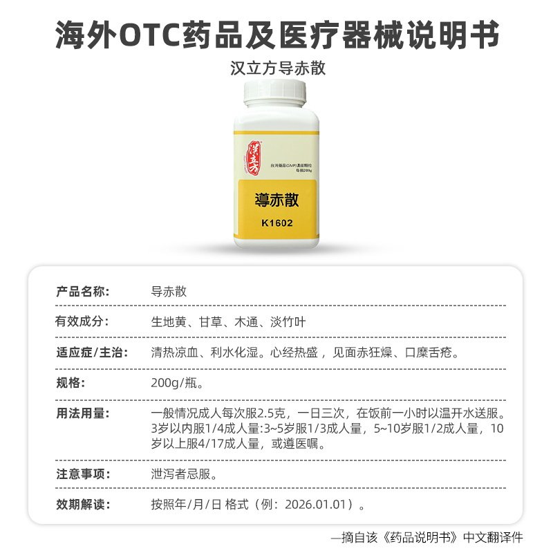 📚 汉立方导赤散清热凉血祛湿利尿心烦燥热口渴港版中成药同仁堂