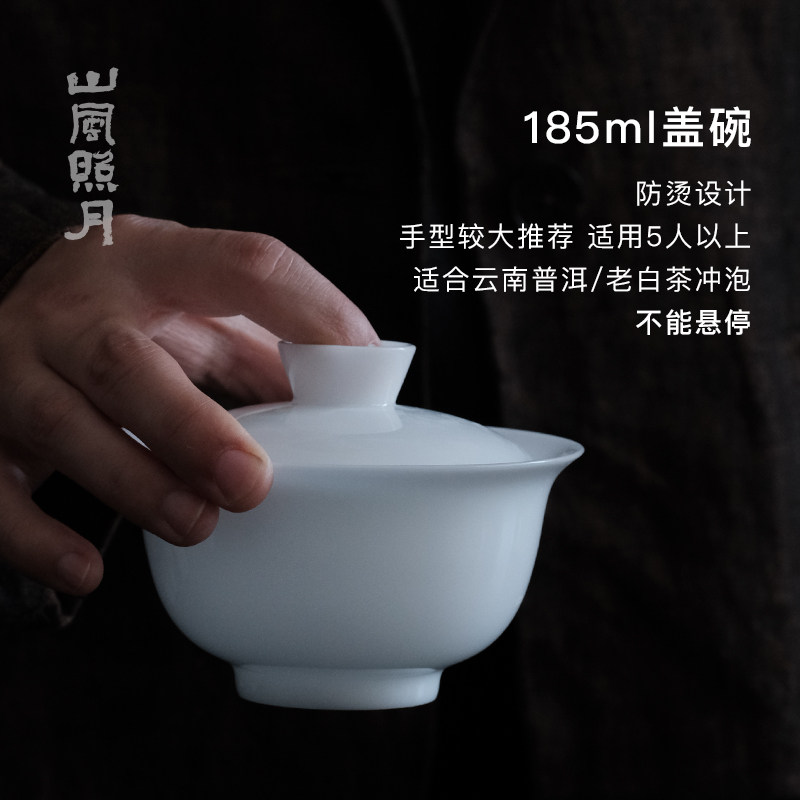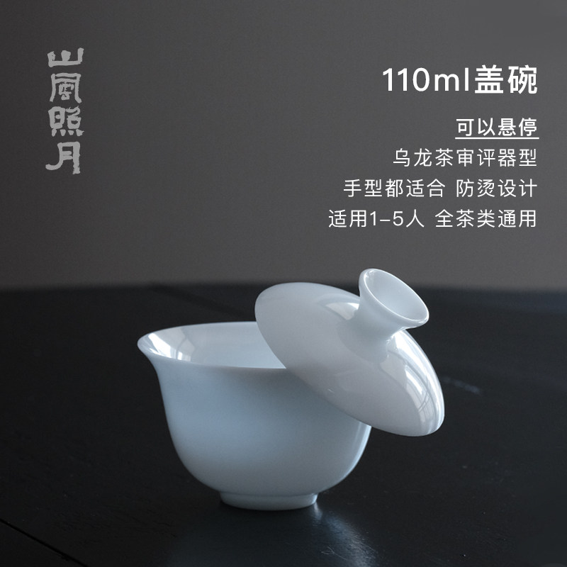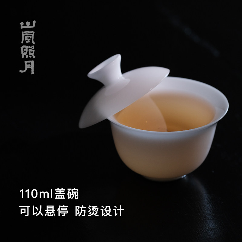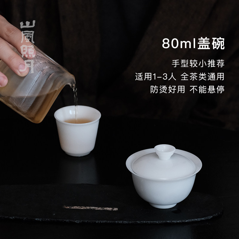 📚 山风照月 冰种玉瓷高端审评盖碗80ml110ml185ml 二才 不烫手茶具