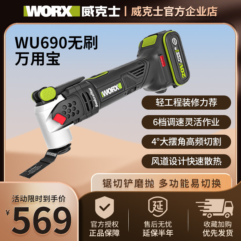 📚 威克士WU690锂电无刷工业级多功能电铲开孔切割机万用宝电动工具