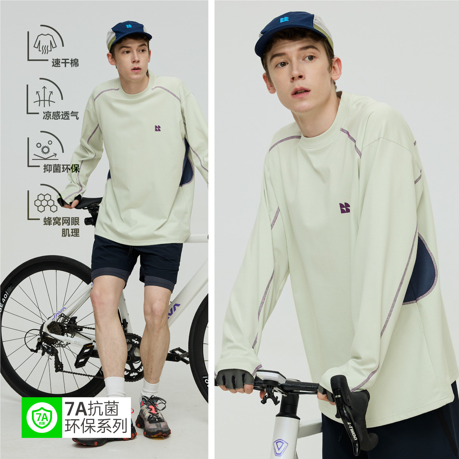📚 TreesOutside户外7A抗菌防螨虫吸湿速干撞色长袖男士骑行服运动