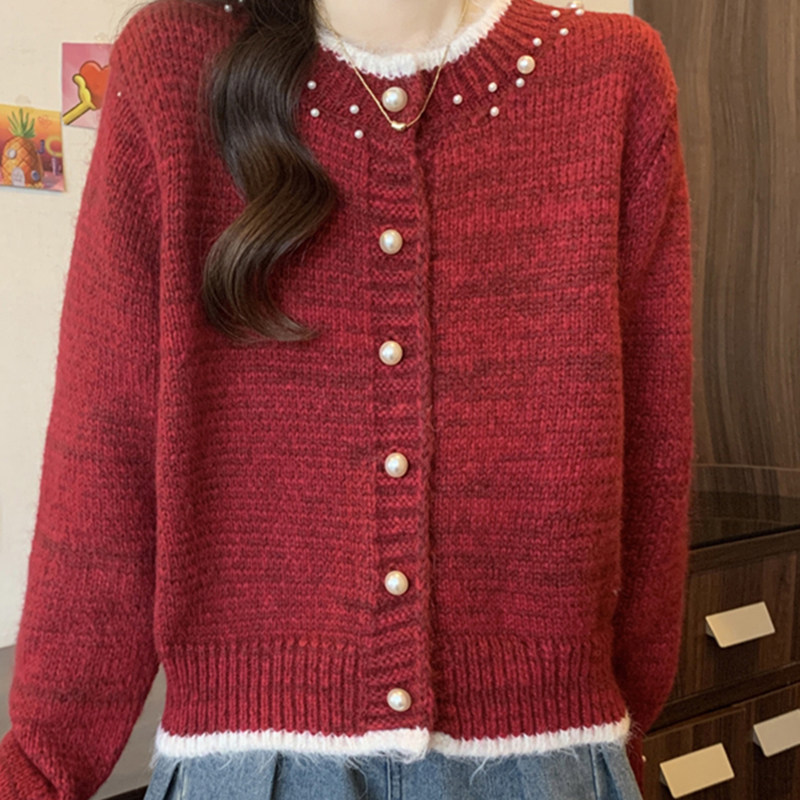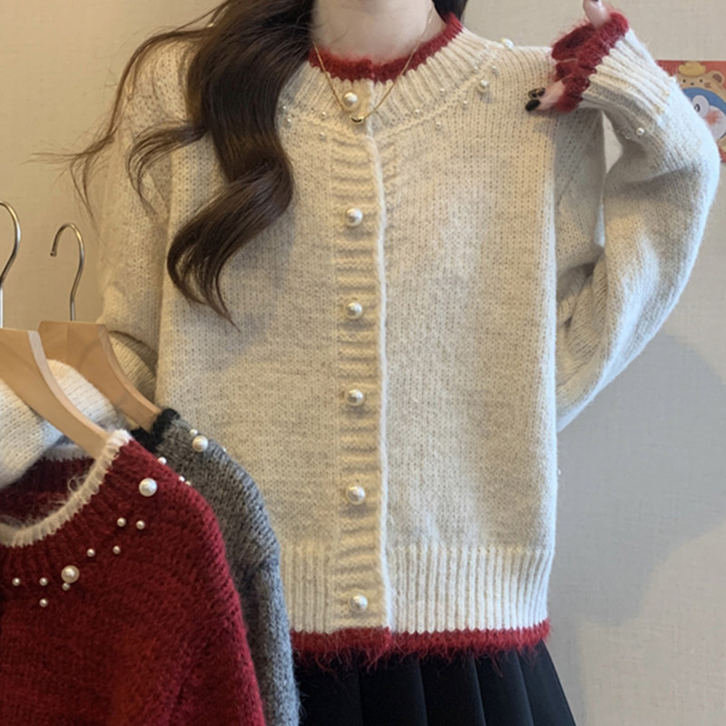 📚 安哥拉红毛衣开衫女装秋冬圣诞新年战袍外套穿搭毛衣宽松外套上衣
