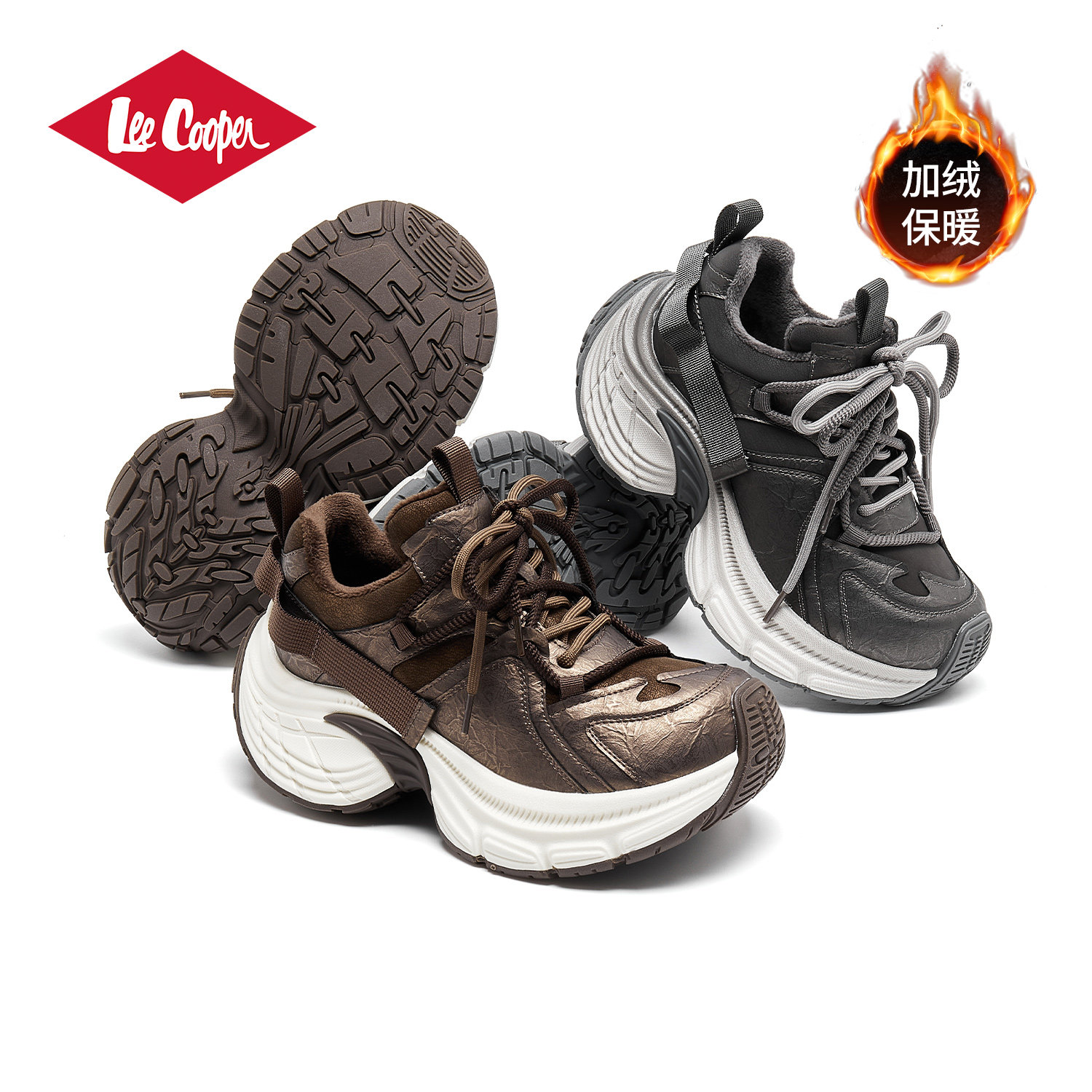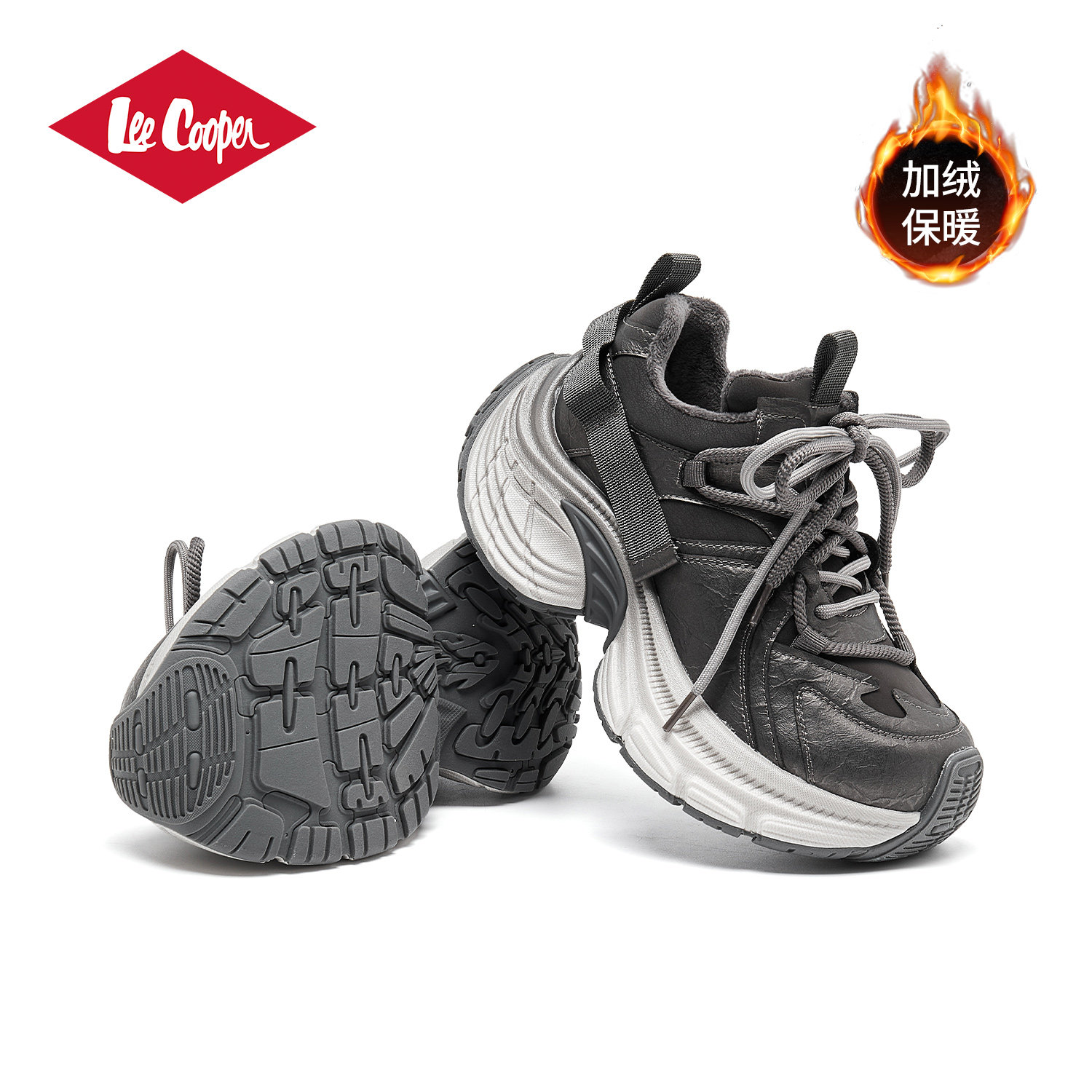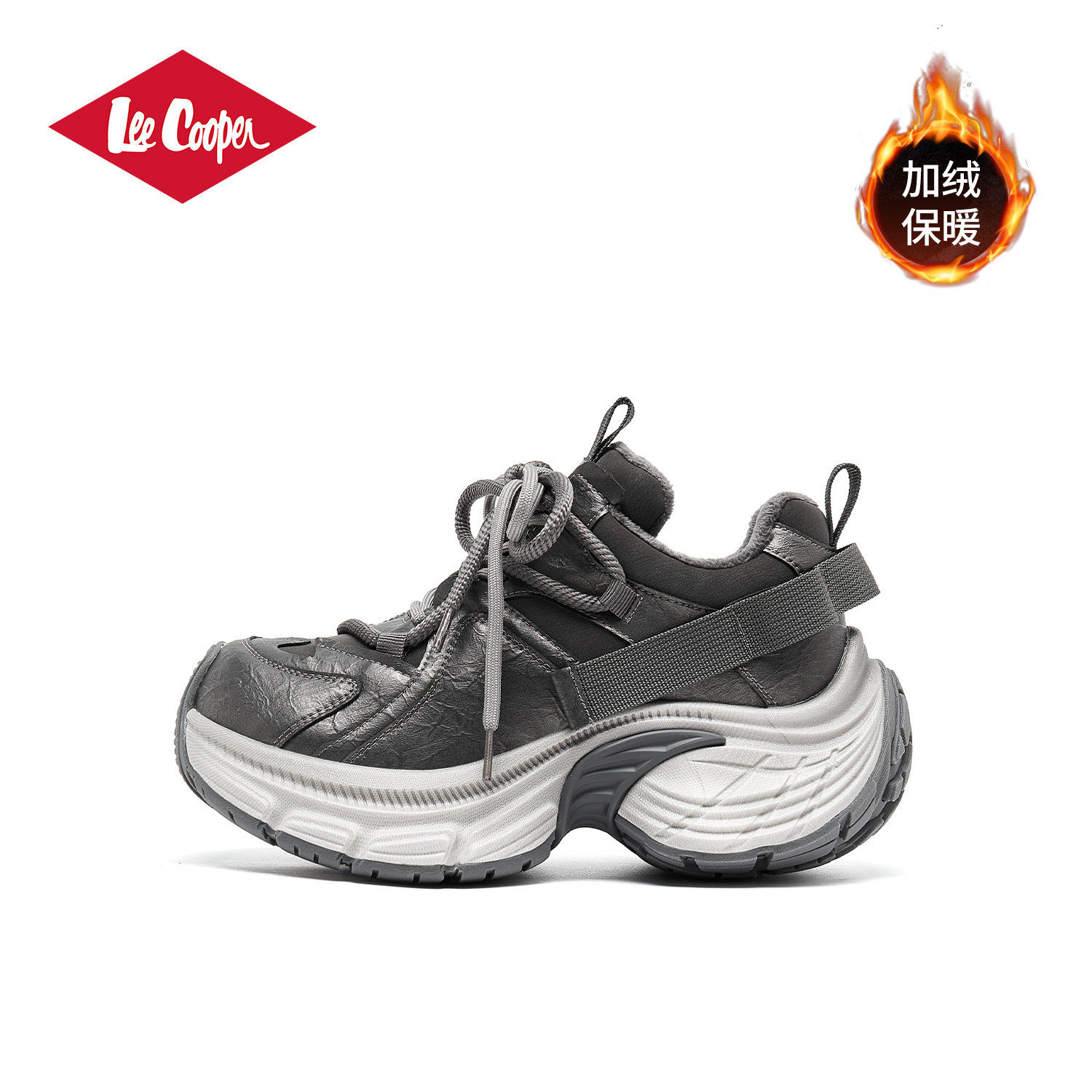 📚 Lee Cooper加绒老爹鞋女2025冬季厚底灰色炸街运动秀气增高休闲鞋