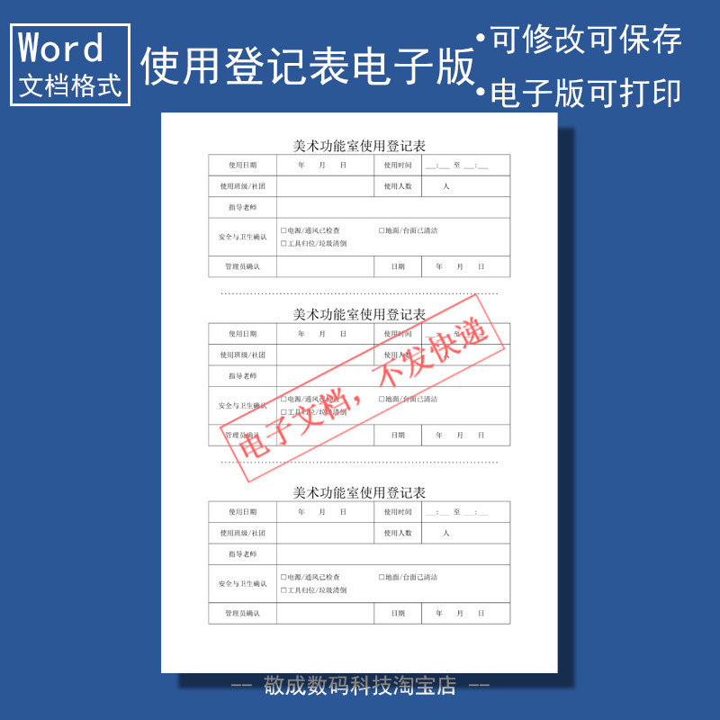 📚 电子版文档word格式模板美术功能室使用登记表格班级社团记录可改