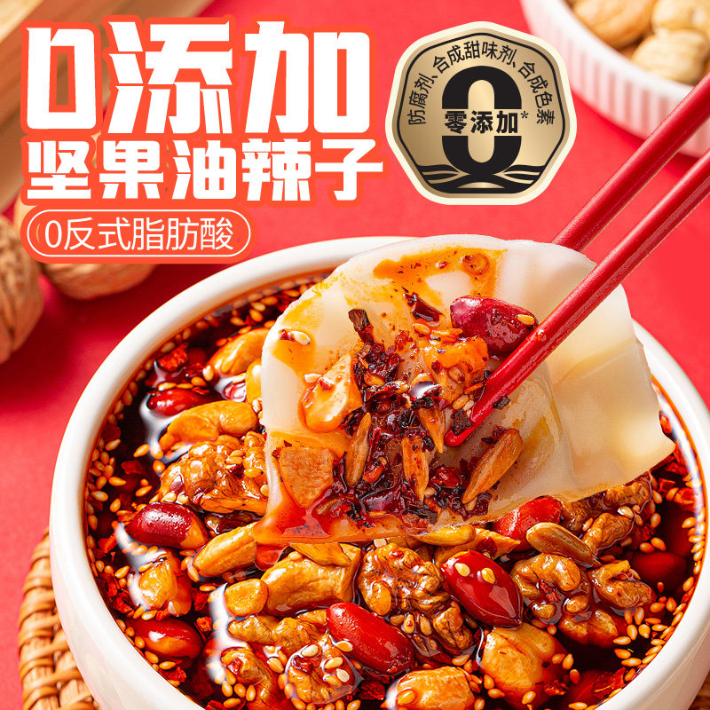 📚 饭扫光坚果油辣子210g瓶装四川红油辣椒酱拌面下饭酱川香红油辣子