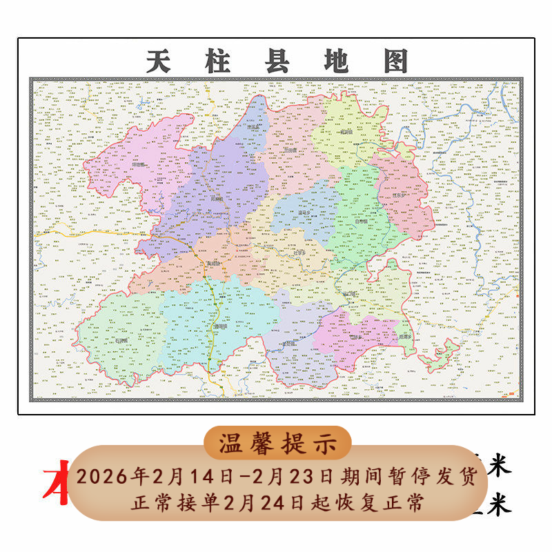📚 天柱县折叠地图1.15m装饰画墙贴贵州省黔东南苗族侗族自治州现货