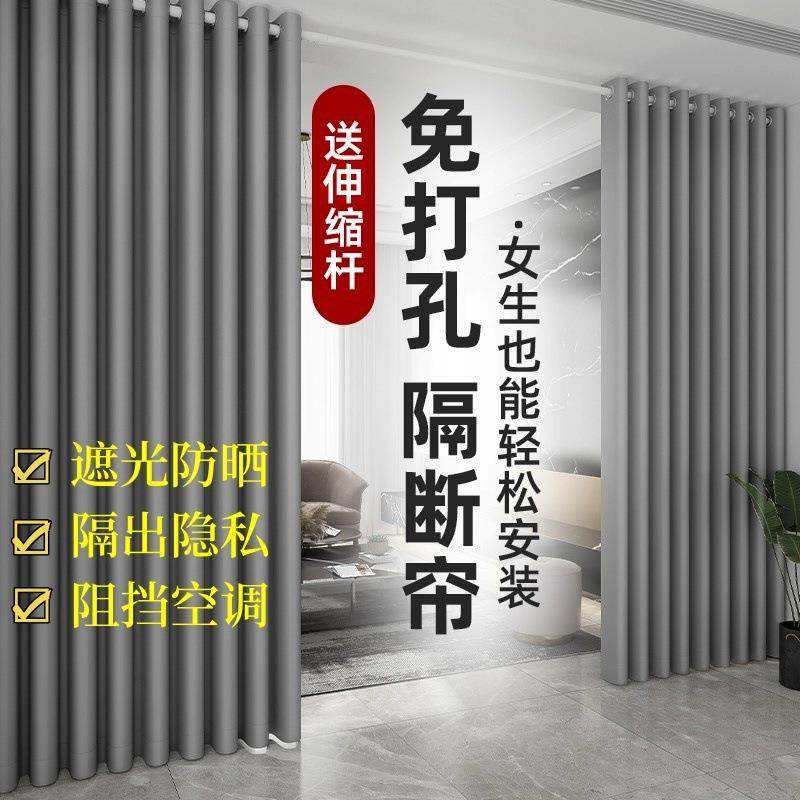 📚 全免打孔窗帘整套送伸缩杆卧室客厅台遮光热防晒出隔厂家直供租屋