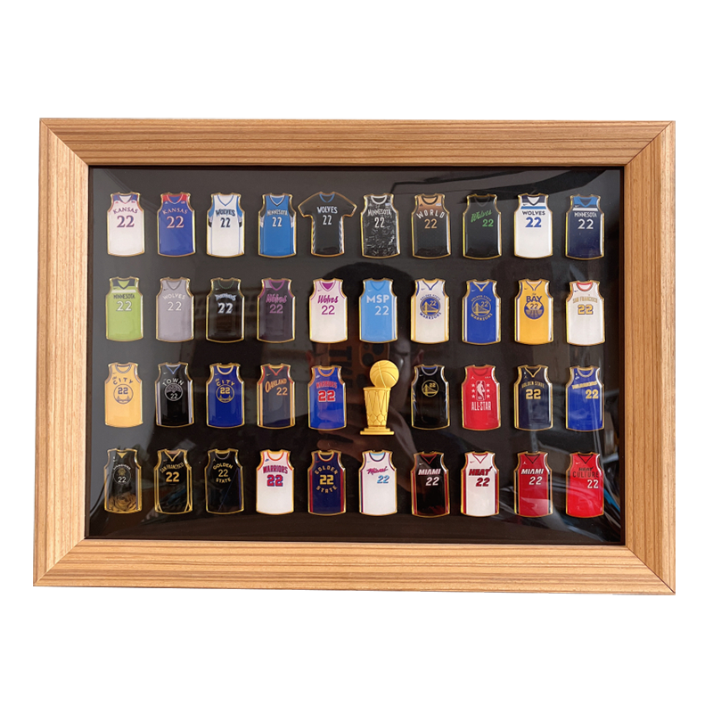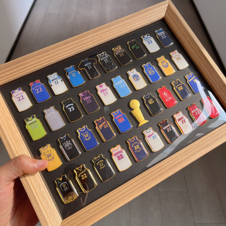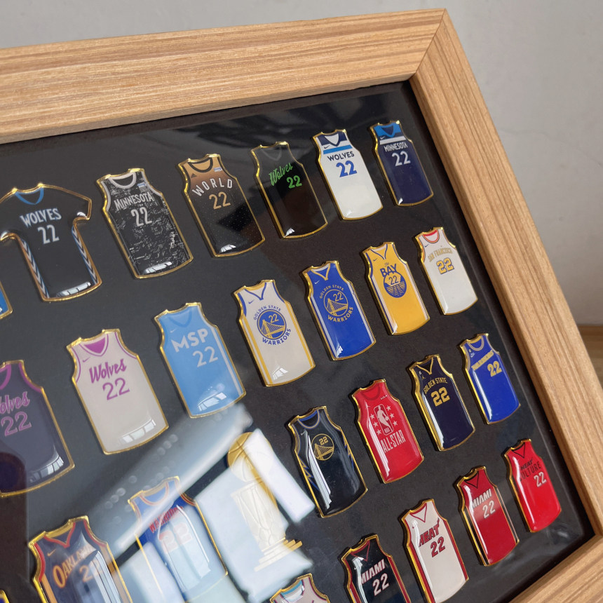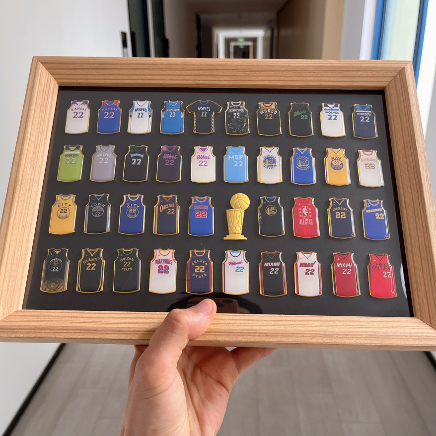 📚 维金斯森林狼勇士热火球衣徽章原创装裱实木相框创意摆台球迷礼物