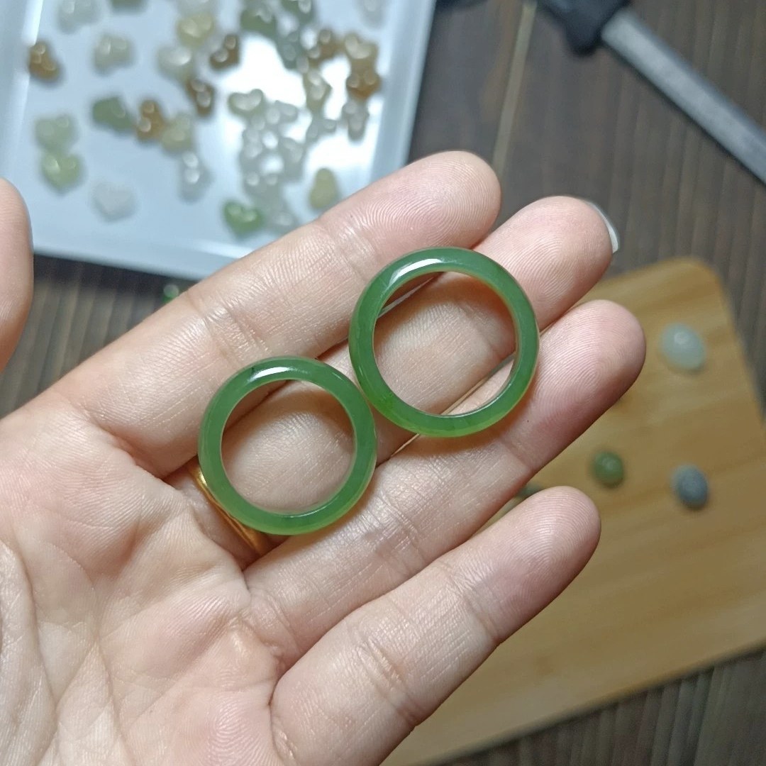 📚 天然和田玉戒指圆条细圈女款碧玉阳绿指环玉石戒圈古风小众男素圈
