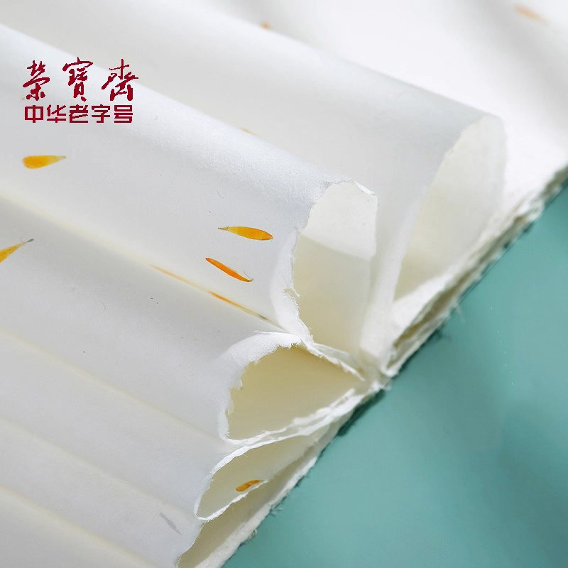 📚 荣宝斋安徽泾县日星花草纤维云龙宣纸半生半熟作品纸小楷书法国画专用纸三分熟宣纸熟宣信笺纸一笔笺手工宣纸