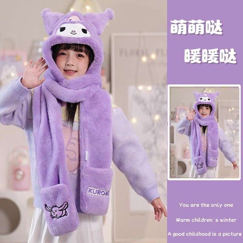 💖"库洛米儿童可爱毛绒帽子围巾一体,让冬天不再寒冷🍁"