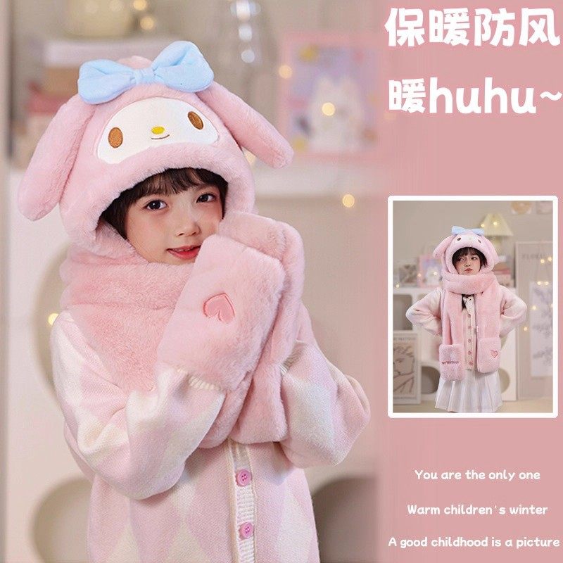 #毛绒帽子 #围巾 #手套 #保暖 #防寒 #冬日好物 #库洛米儿童可爱毛绒帽子围巾一体女童手套