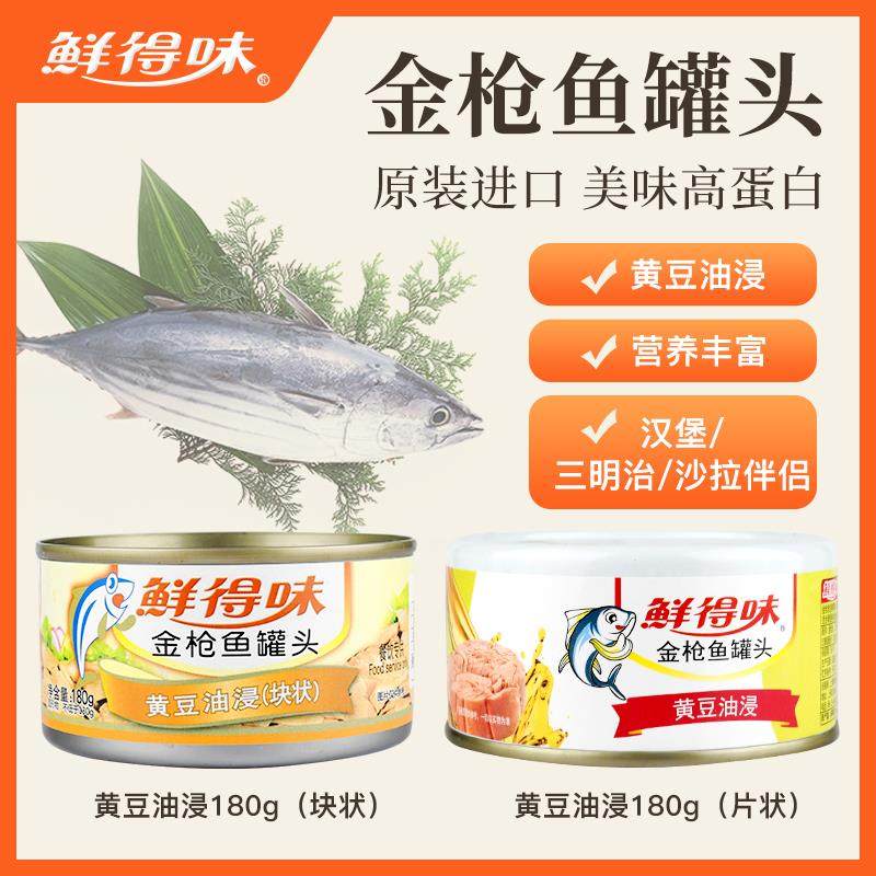 📚 进口鲜得味金枪鱼罐头黄豆油浸块状吞拿鱼180g*6盒寿司三明治沙拉