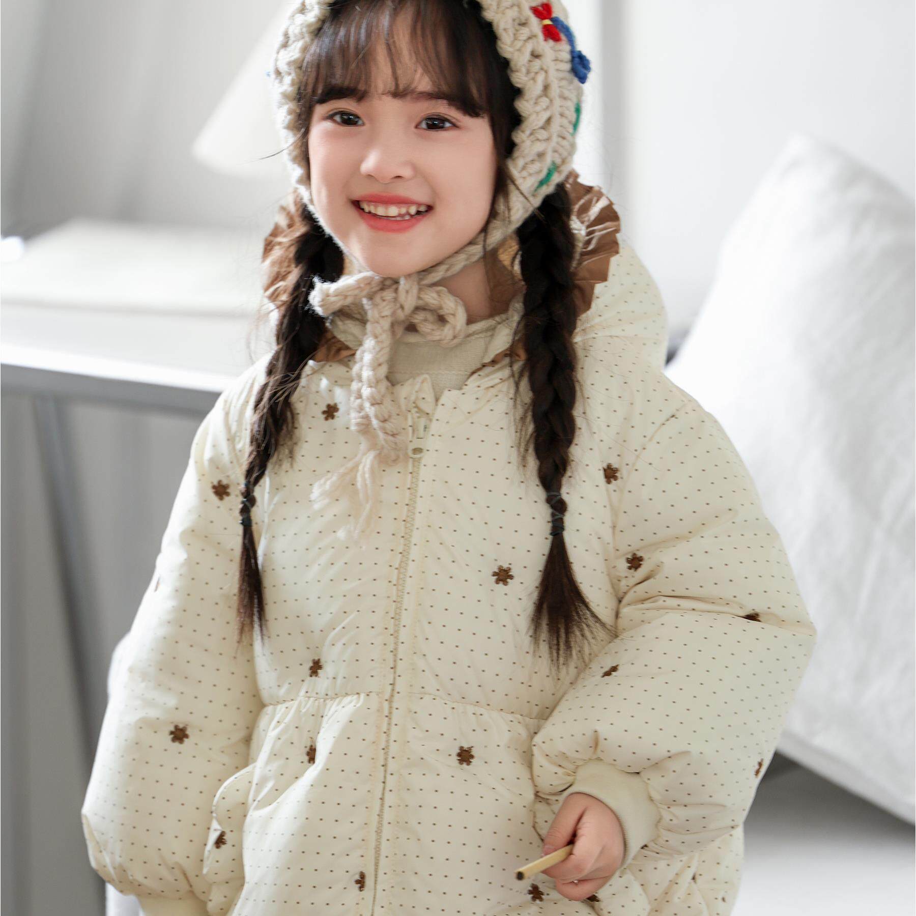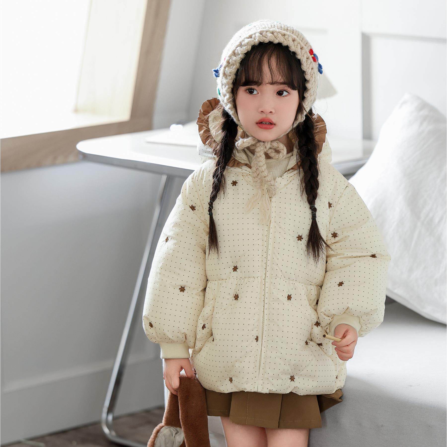 📚 YUYBEIB女童羽绒服直充防跑绒波点印花宝宝冬季新款灯笼袖外套