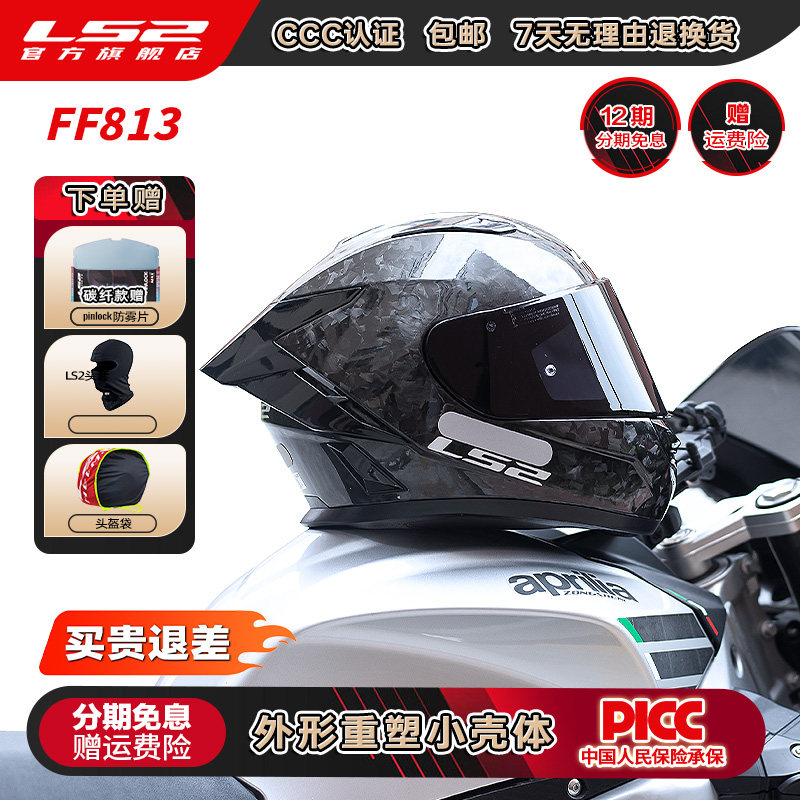 📚 LS2碳纤维摩托车头盔男女机车赛车四季通用全盔防雾大尾翼FF813