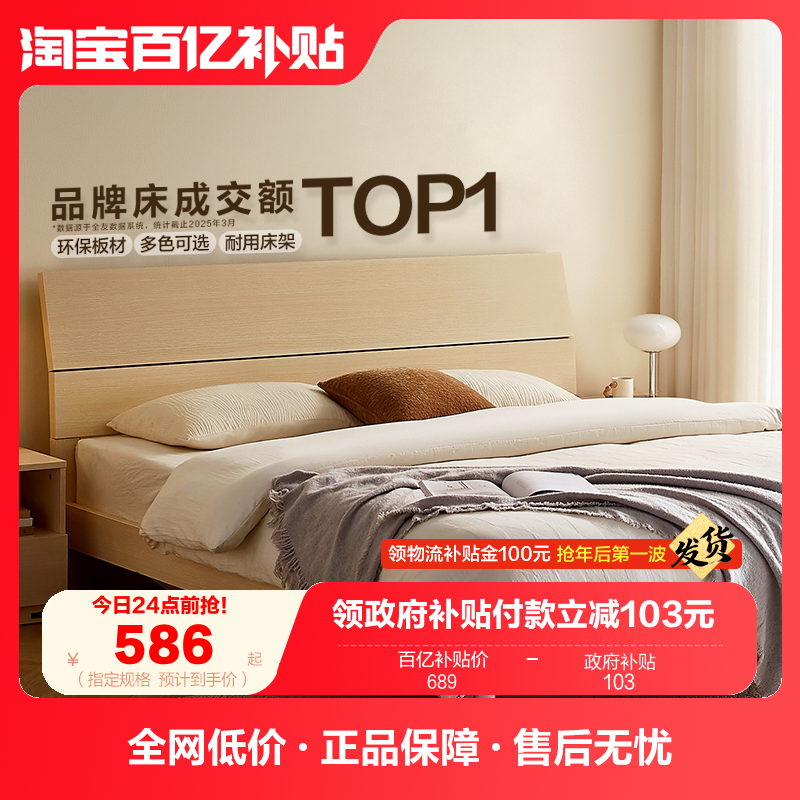 📚 全友家居家用1.8m双人板式床架出租房屋用1米5卧室单人床2025新款