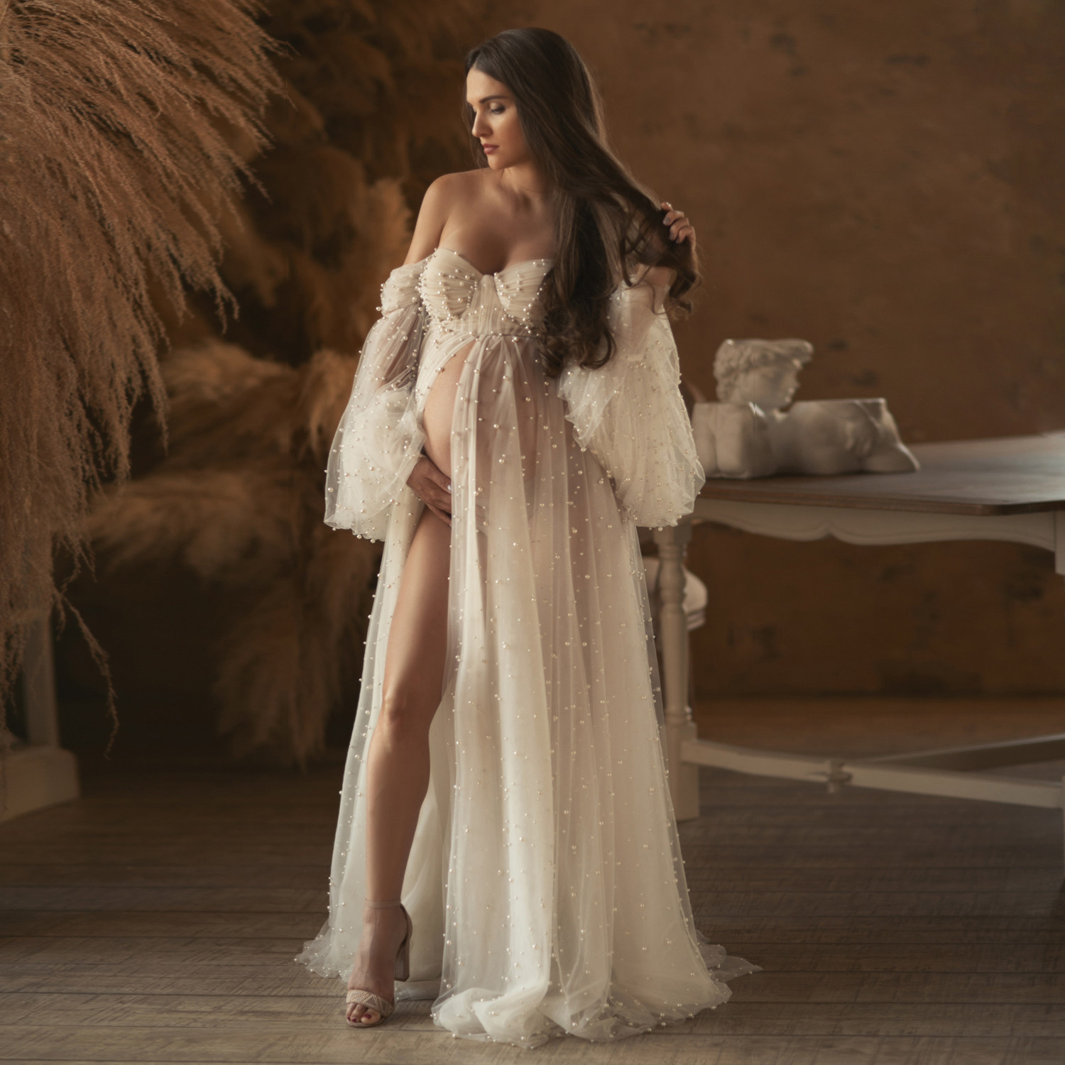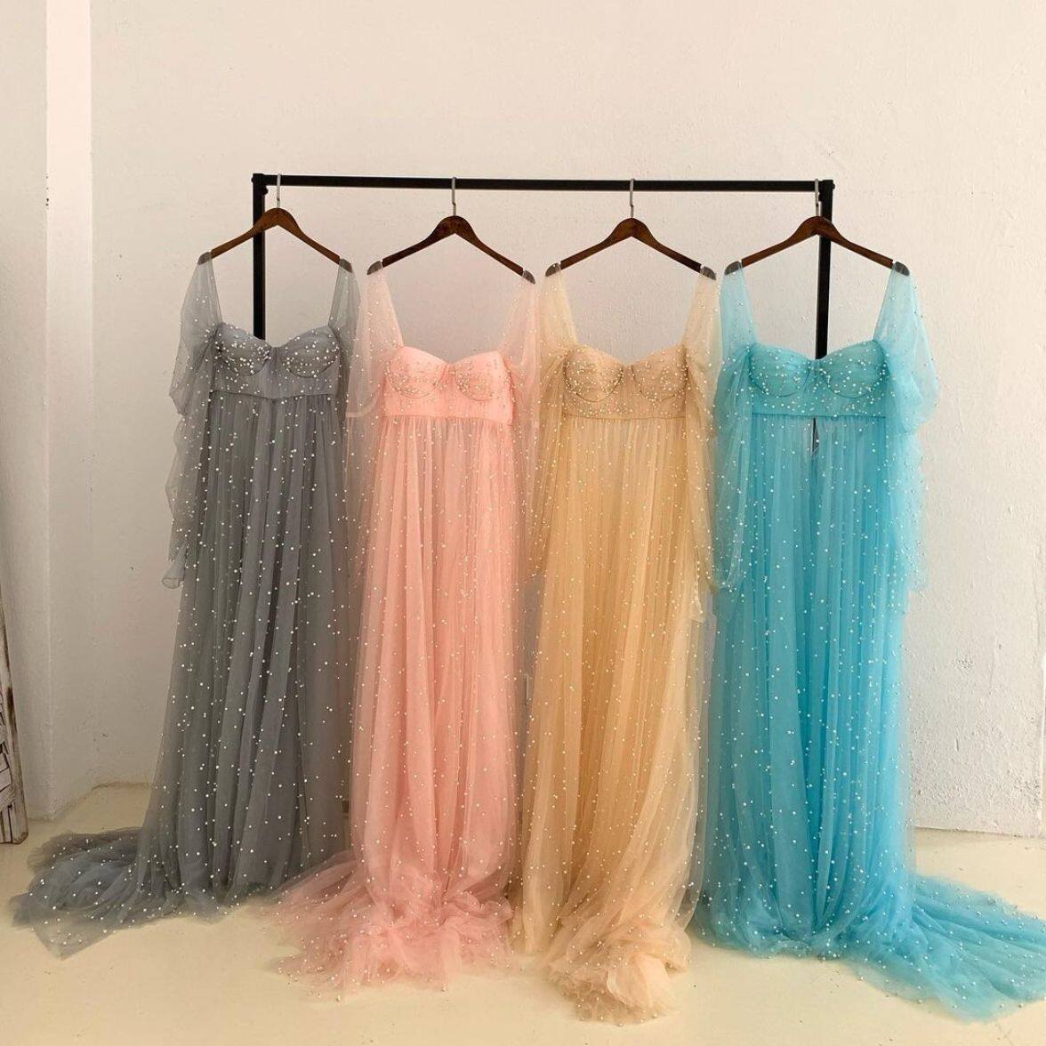 📚 Pearl Tulle Maternity Dresses for Babyshower Sweetheart Fron