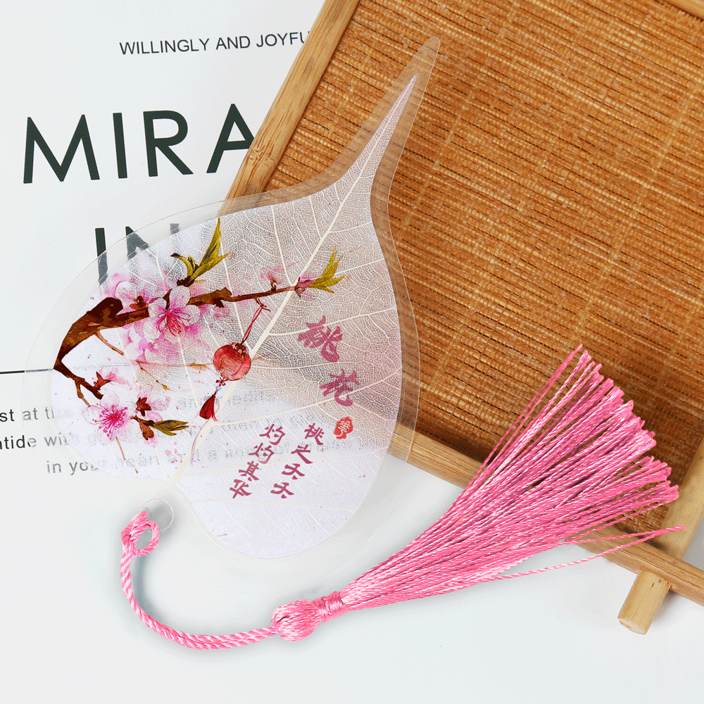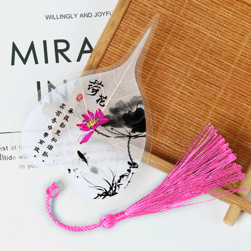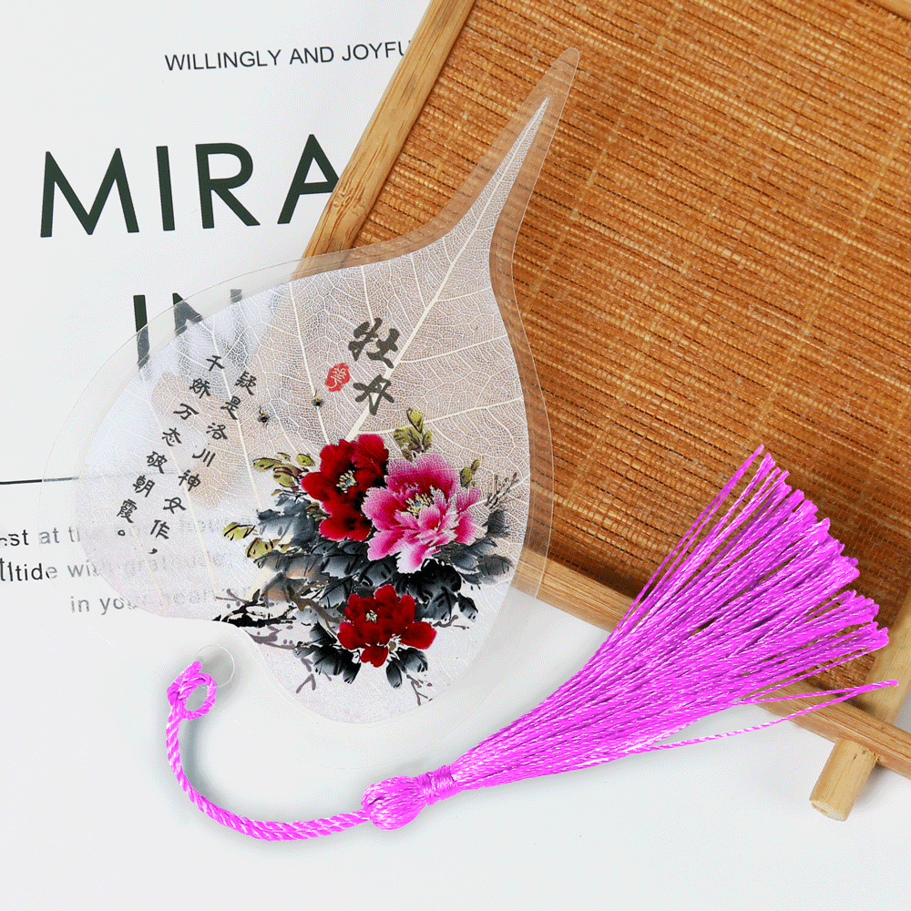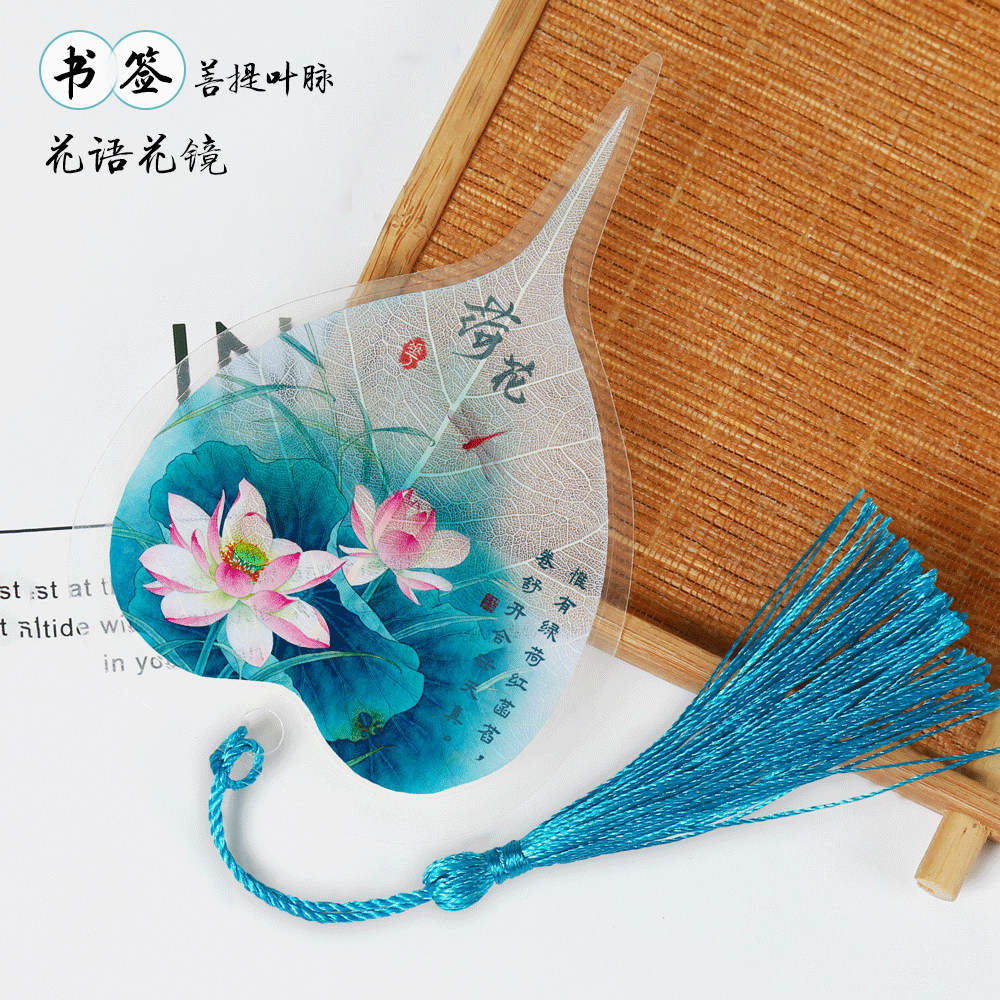📚 菩提叶脉书签花中君子桃花牡丹花荷花复古泼墨风diy材料书签定制