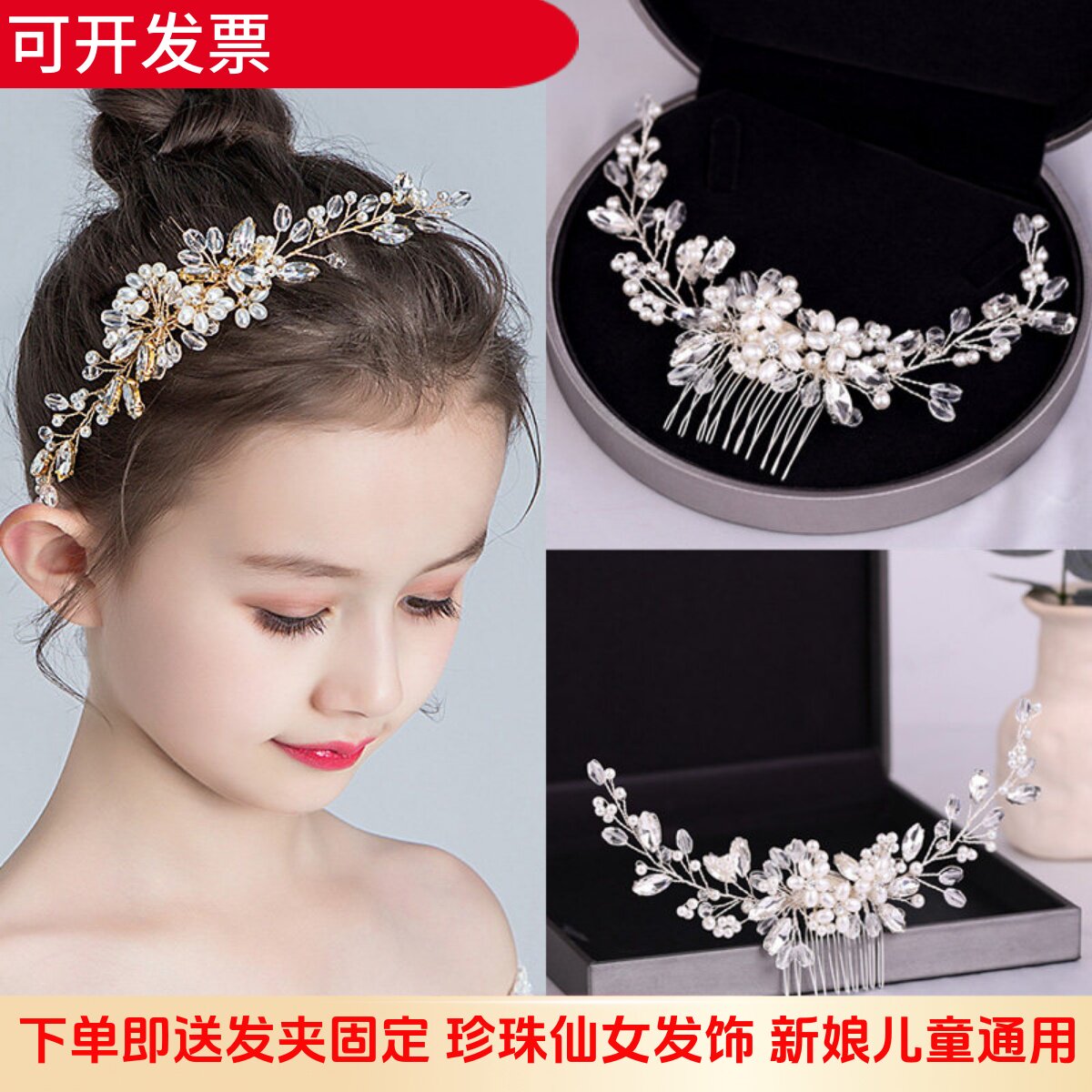 📚 儿童插梳女童水晶头饰公主演出走秀发梳女孩表演礼服配饰甜美发饰