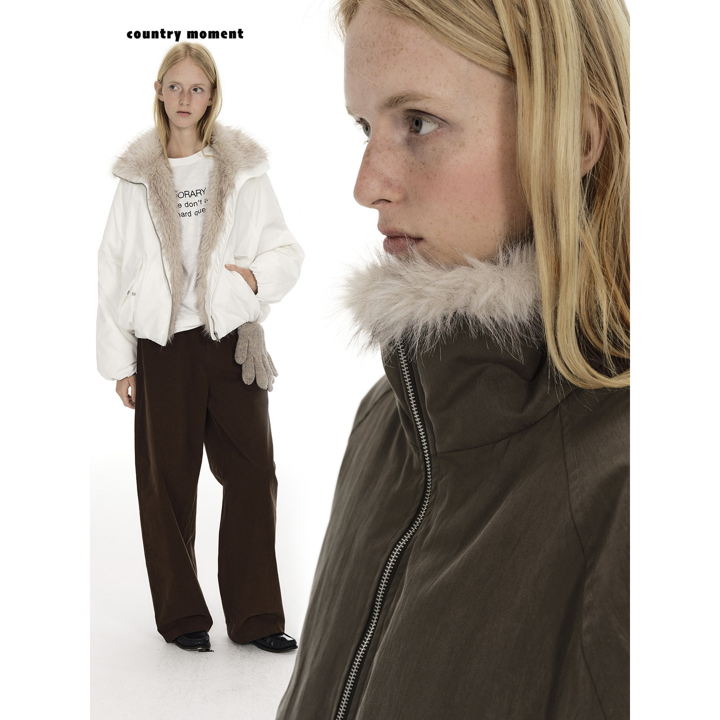 📚 CountryMoment 座山雕毛领派克羽绒服女冬保暖短外套立领宽松夹克