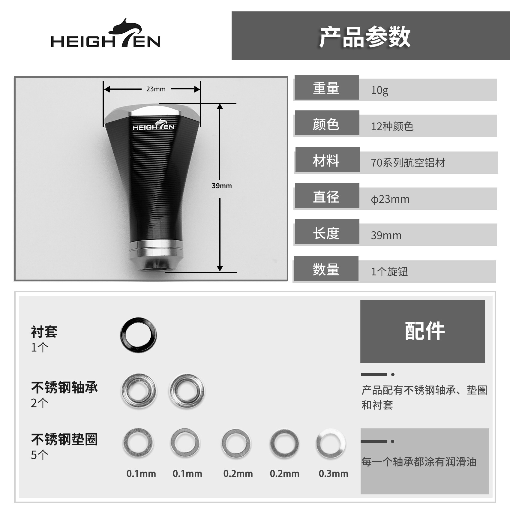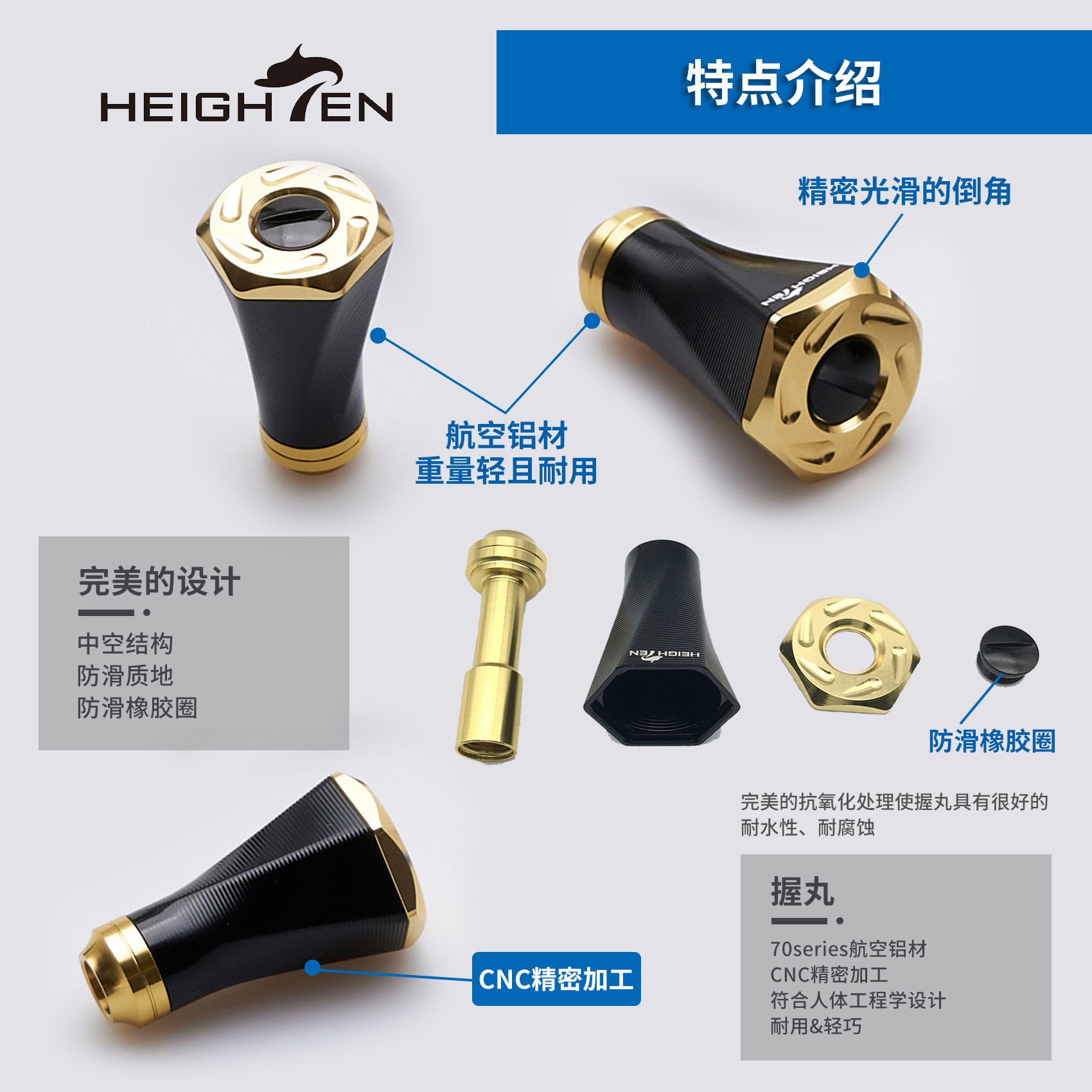 📚 HEIGHTEN海腾改装水滴轮鼓轮纺车轮圆形握丸垂钓摇臂航空铝渔轮