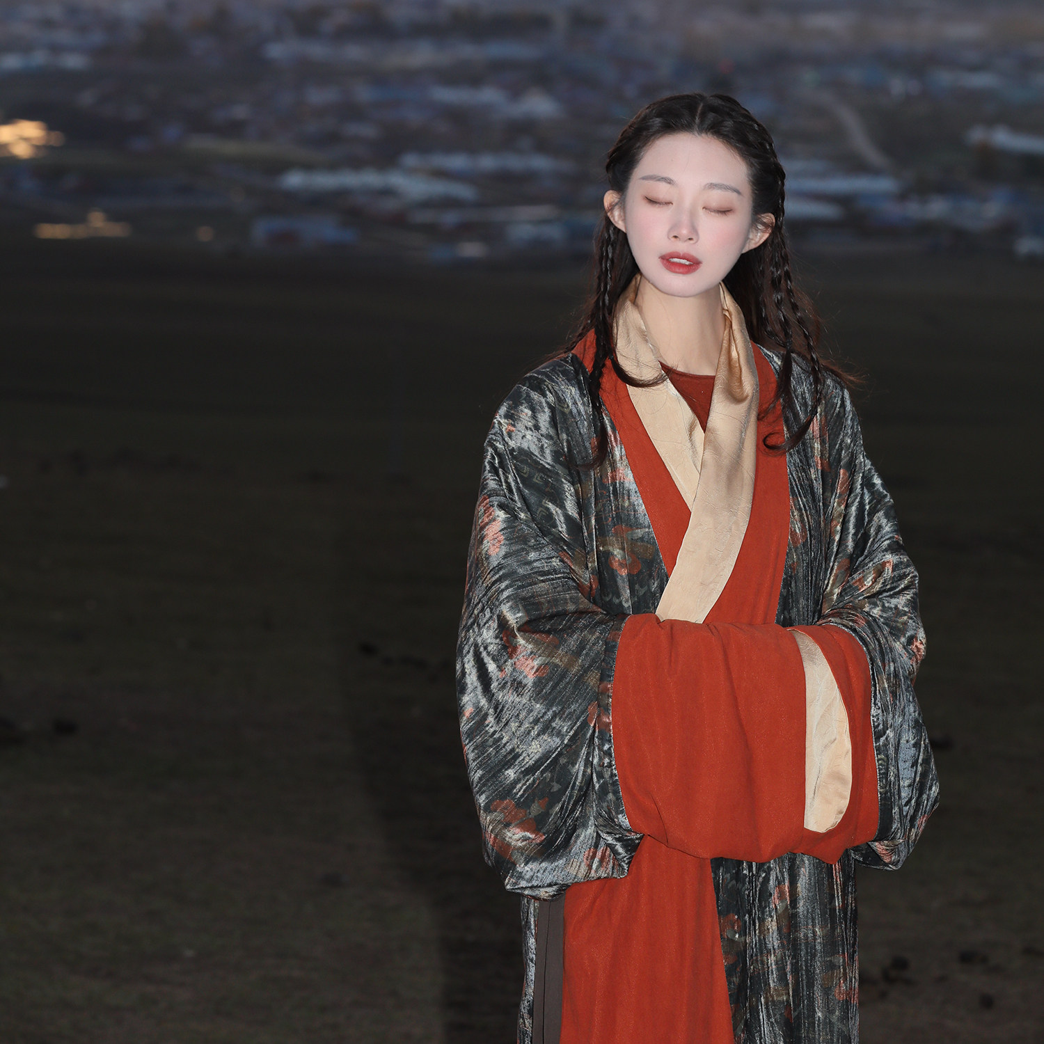 📚 谜阿凰【抚琴直裾】原创复原汉服秋冬双面穿重工大放量女款战国袍