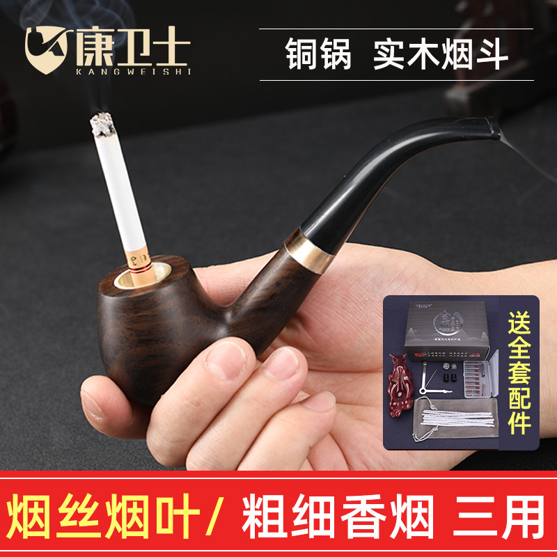 📚 康卫士实木烟斗男士香烟过滤器手卷烟草烟丝专用吸烟烟袋锅子旱烟