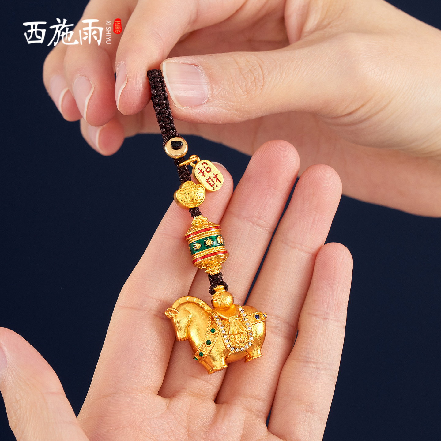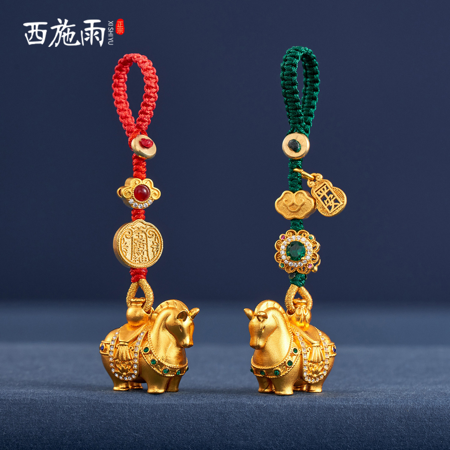 📚 沙金黄铜实心唐马车钥匙扣挂件高级感生肖马包包挂饰马上有钱男女