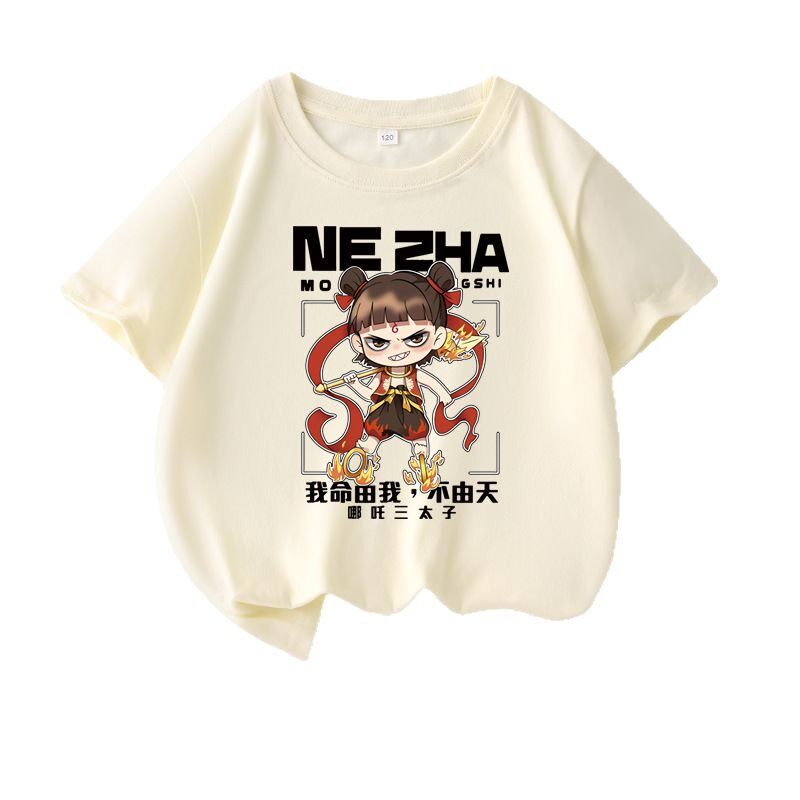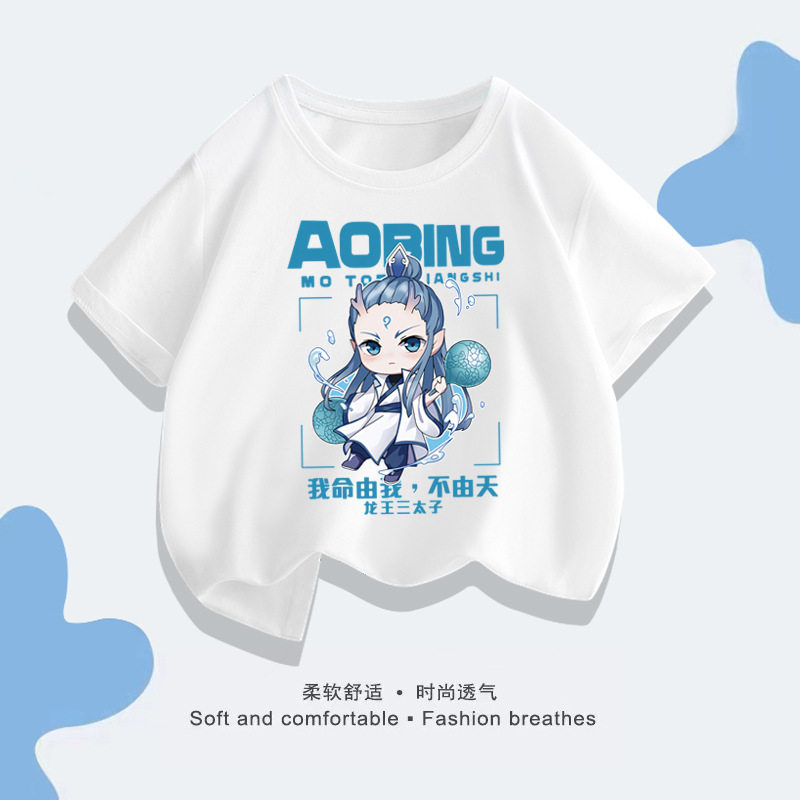 📚 儿童短袖t恤2025夏季新款男童哪吒敖丙三太子上衣中大童服装白色